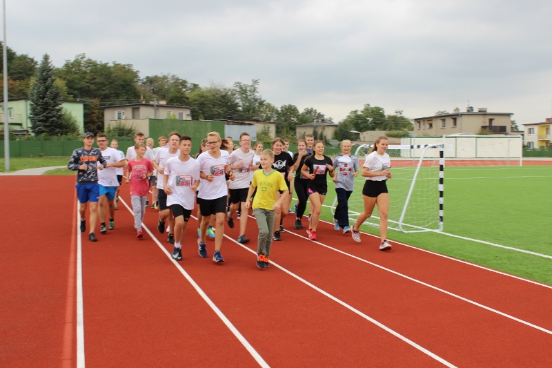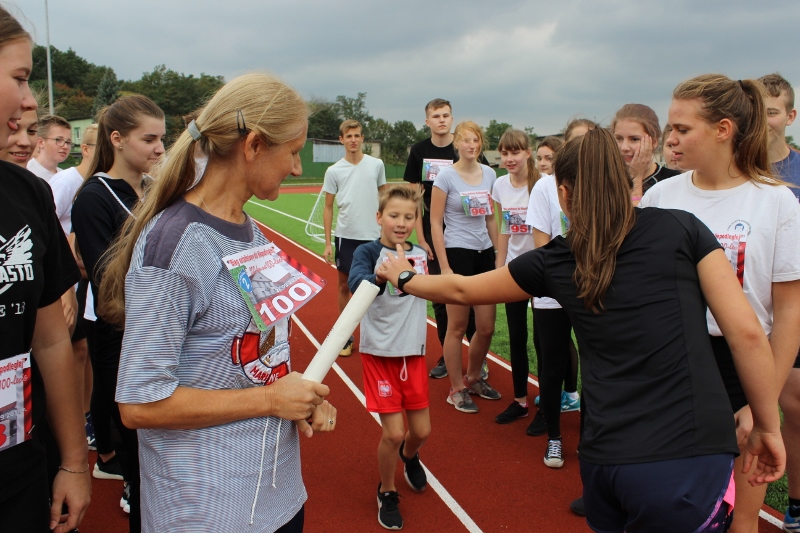 152 uczniów i nauczycieli w formie sztafety pokonało 300 okrążeń stadionu, co dało równowartość 100 km. W taki sposób biegacze-ochotnicy przyłączyli się do obchodów stulecia odzyskania niepodległości. Na pomysł wpadł dyrektor „dwójki” Jerzy Kurzawa, który zaangażował do sztafety wuefistów. Nie trzeba ich było długo namawiać. Do nich przyłączyli się uczniowie, którzy tłumnie stawili się na linie startu.