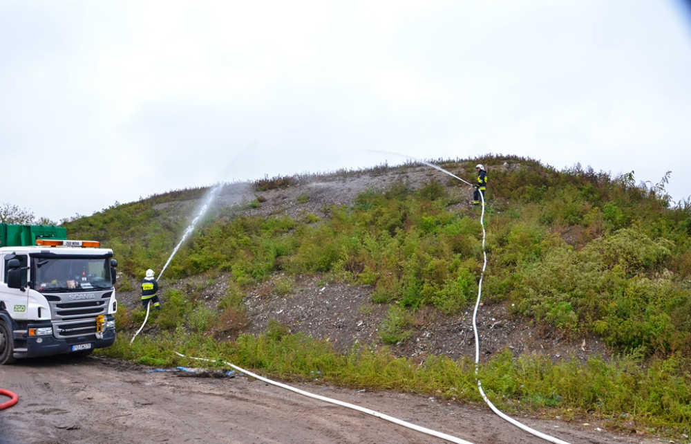 Dużych rozmiarów teren składowiska w ZGO jest specyficzny. Znajduje się tam m.in. kilka hal wypełnionych maszynami i odpadami, a także hałdami np. plastiku przeznaczonego do recyklingu. Duże odległości i rozległy obszar były okazją dla strażaków do przećwiczenia przetłaczania wody na duże odległości oraz próbami podania prądów wody na teren imitujący pożar. Zbudowano dwie linie każda o długości ok. 600 m, punkty podbicia ciśnienia oraz zbiorniki buforowe.