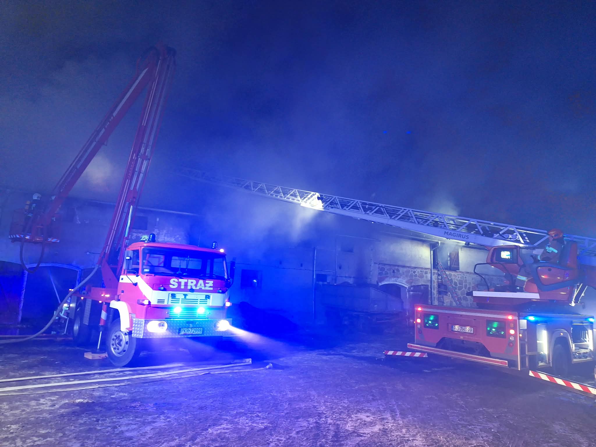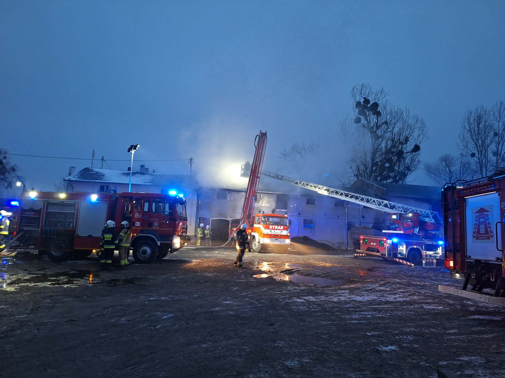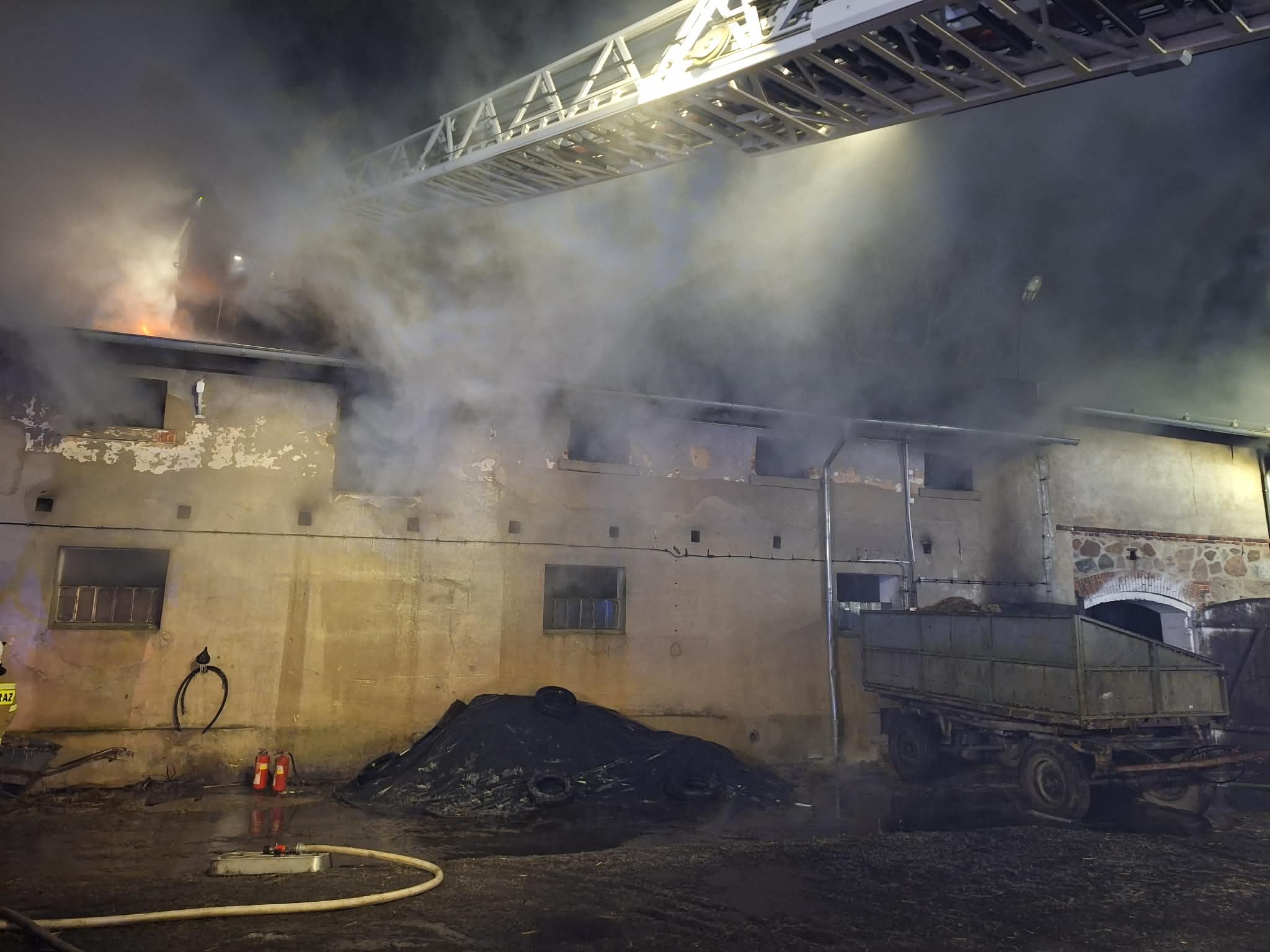 Strażacy z trzech powiatów walczą z pożarem kotłowni pod Krotoszynem. Trzeba było ewakuować około 70 sztuk bydła.