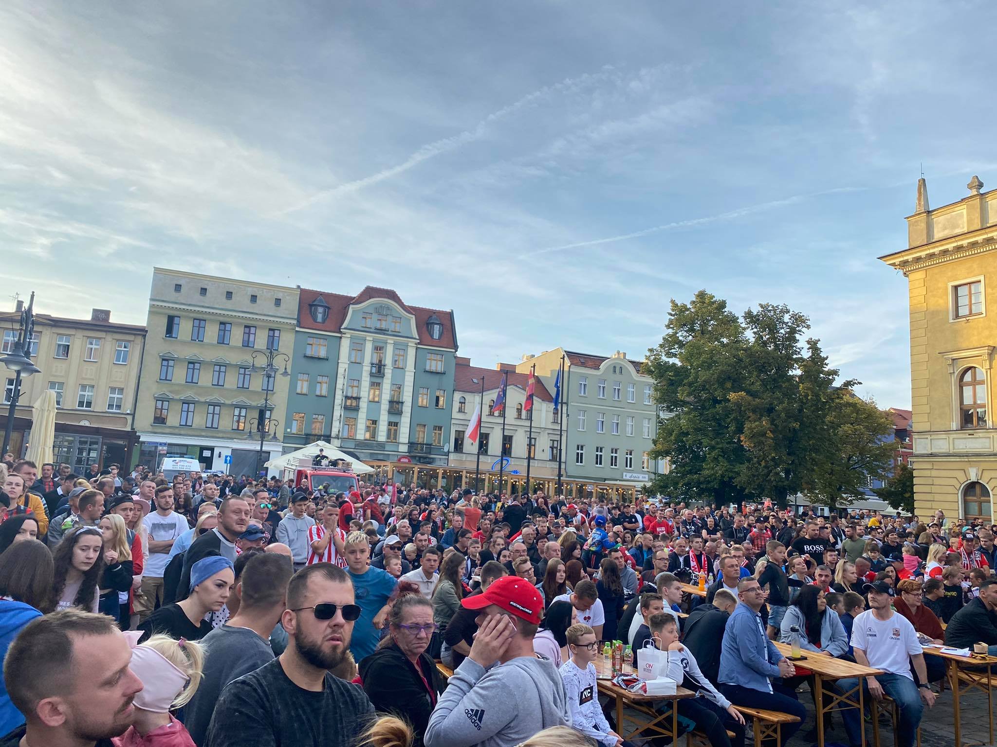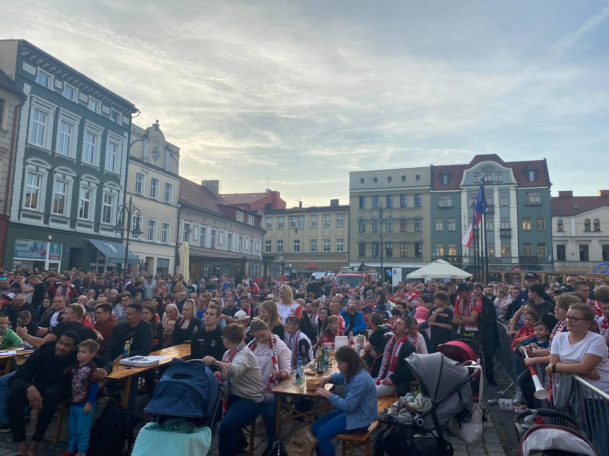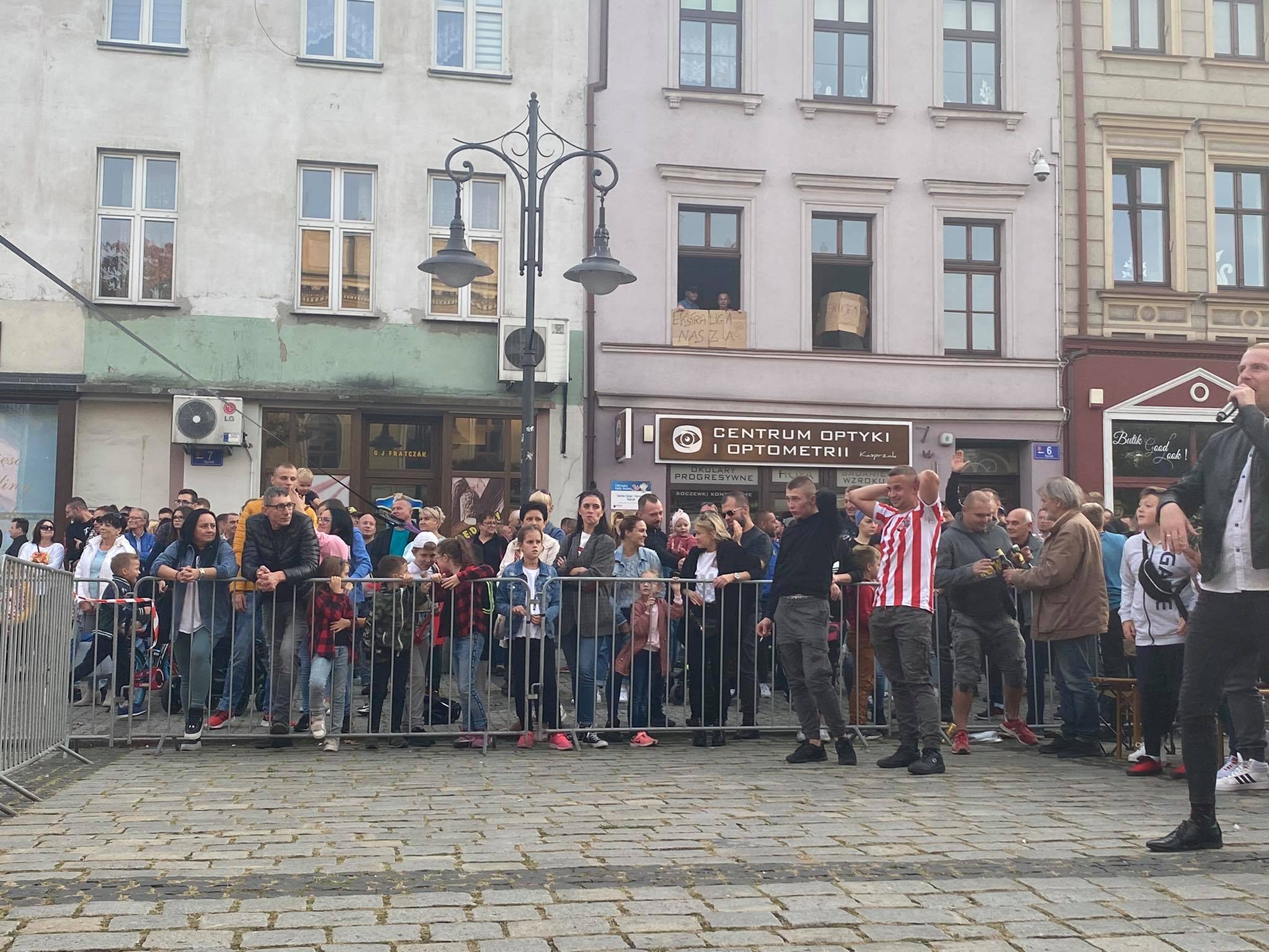 Na ostrowskim Rynku trwa dopingowanie i świętowanie. Strefa kibica jest szczelnie wypełniona. Kibice oglądają mecz w Krośnie i cieszą się z historycznego awansu. Zobaczcie, jak wygląda feta.