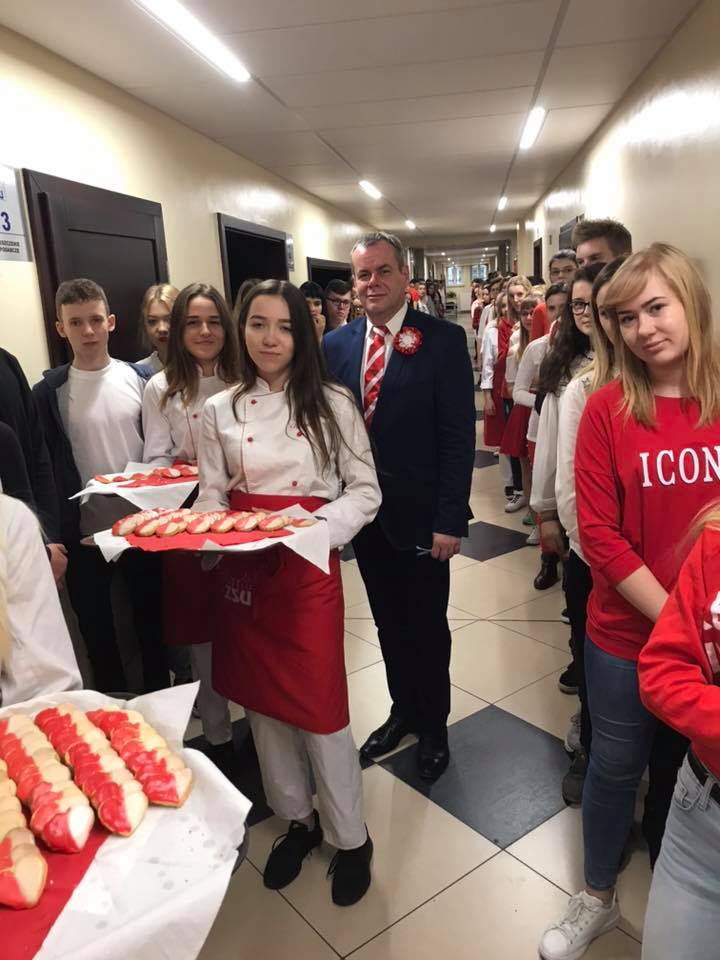 Na niecodzienny pomysł wpadli uczniowie Zespołu Szkół Usługowych w Ostrowie Wielkopolskim. Z okazji 100-lecia odzyskania przez Polskę niepodległości, przedstawiciele ZSU postanowili upiec biało-czerwone ciasteczka. Zamienili też na jeden dzień swoje biało-granatowe barwy na te narodowe.