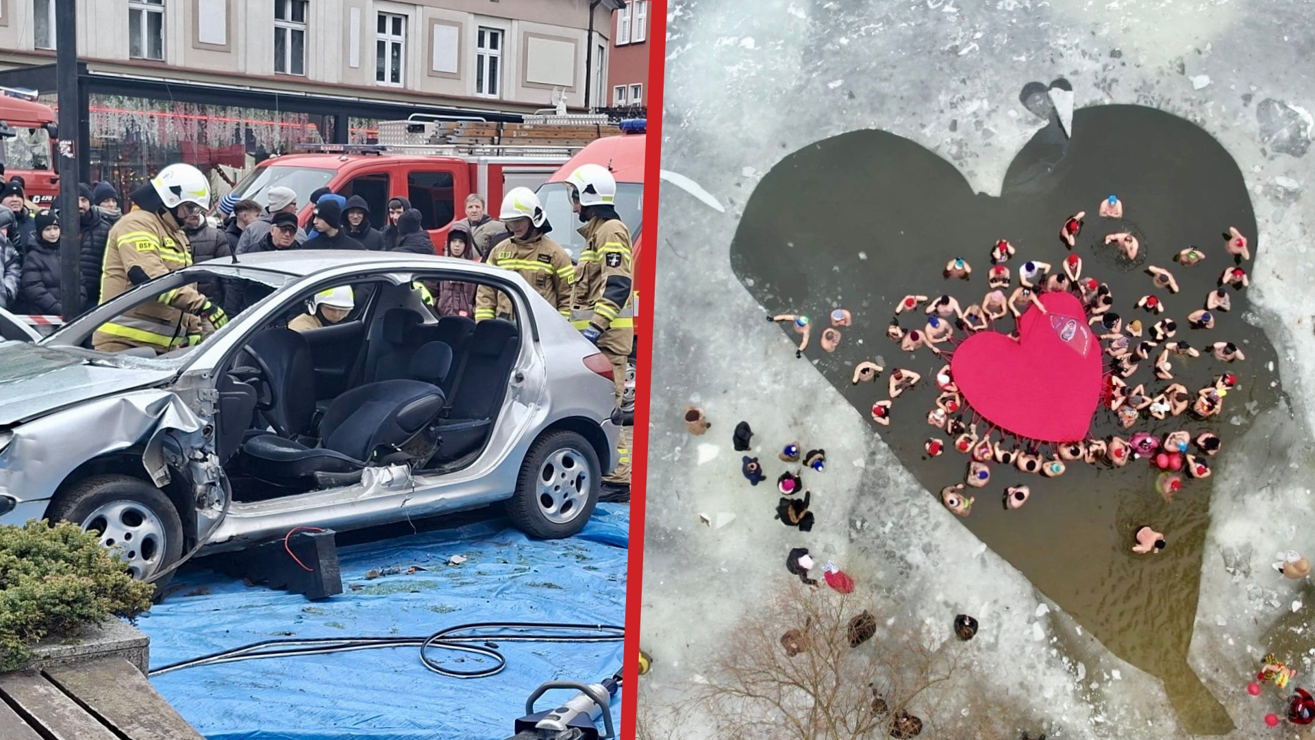 Służby mundurowe zaprezentowały sprzęt, a morsy wykuły w lodzie gigantyczne serce. Tak Ostrów gra z WOŚP.