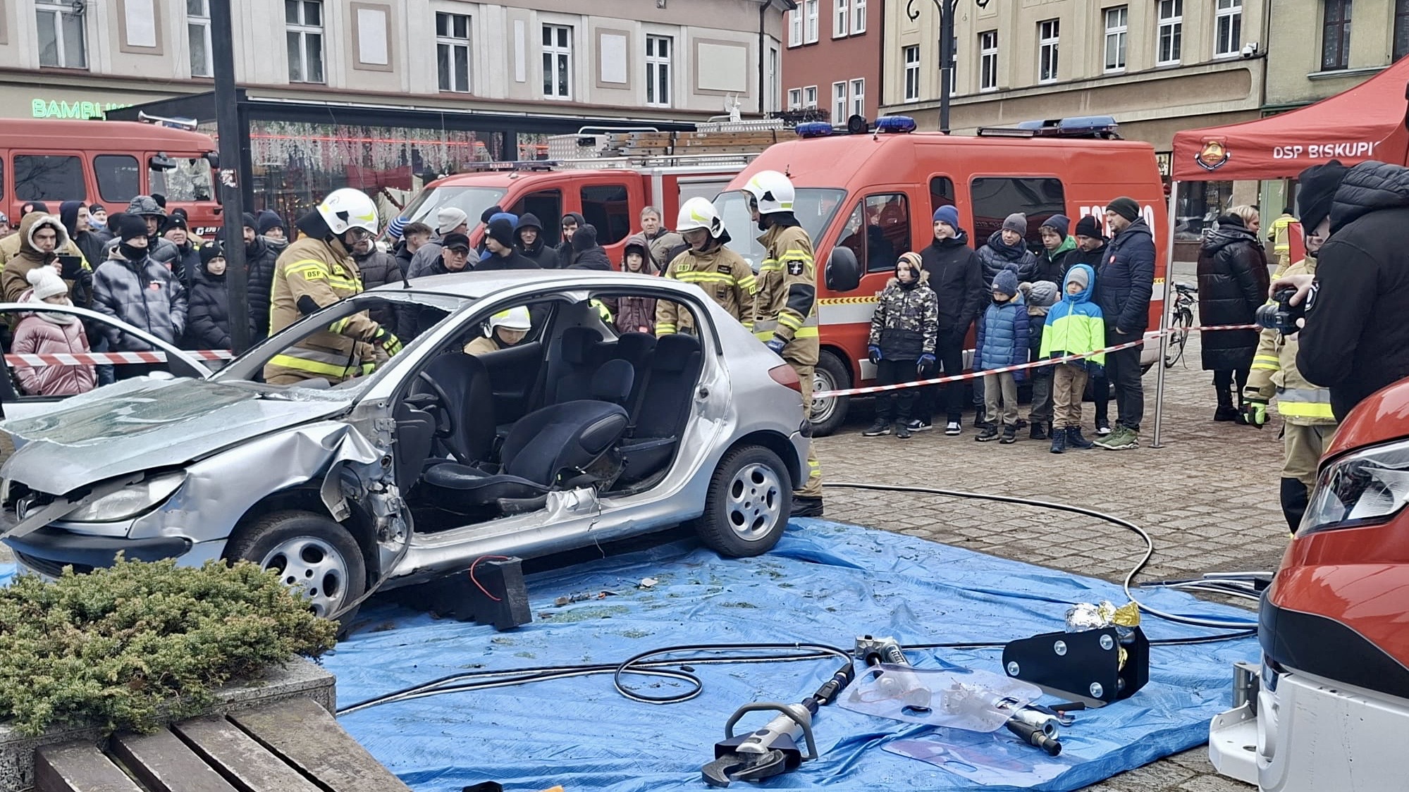Działo się także na ostrowskim Rynku, gdzie odbyły się pokazy służb mundurowych. Strażacy zaprezentowali precyzyjne cięcia karoserii pojazdów sprzętem hydraulicznym. To zawsze spotyka się z zainteresowaniem. Zwłaszcza najmłodszych. Podobne działania są prowadzone na miejscu wypadków drogowych, gdy liczy się czas dotarcia do poszkodowanych, aby udzielić im pomocy. Dzisiaj nikt poszkodowany nie został. Tym razem każde cięcie było stricte pokazowe.