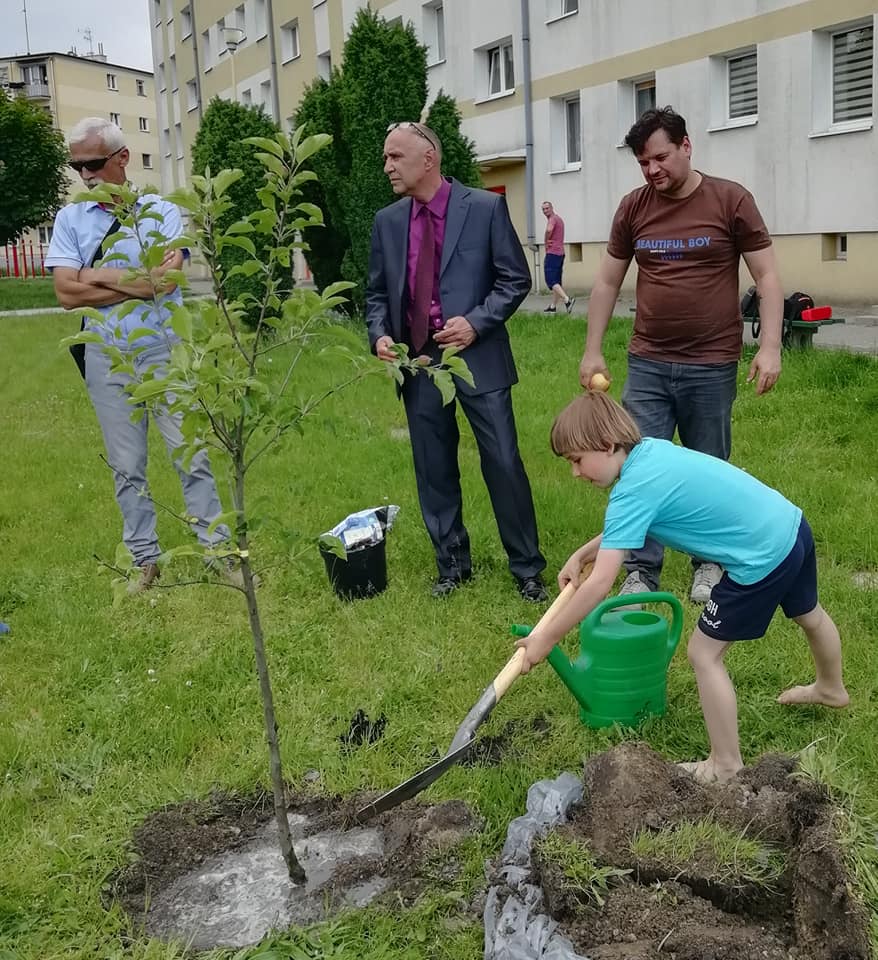 „Może to będzie nowy zwyczaj związany nie tylko z Dniem Dziecka. Przy okazji otwarcia placu zabaw przy ul. Do Zdroju na Osiedlu Bogusław burmistrz Jarocina Adam Pawlicki częstował dzieciaki nie słodyczami, ale słodkimi jabłkami” – czytamy na fanpage’u Zielony Jarocin. Następnie włodarz wraz z dziećmi oraz najmłodszym w gminie członkiem zarządu osiedla Tomaszem Berlakiem (18 lat), posadził jabłoń w miejscu, w którym przed laty znajdował się sad rodziny Radolińskich, która w swoim majątku miała Jarocin.