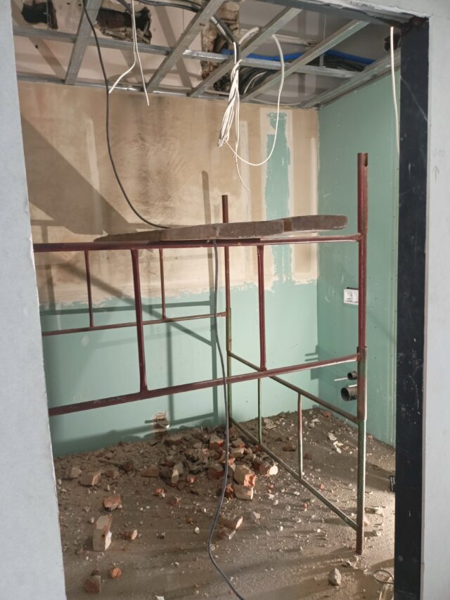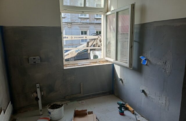 Na razie prace skupiają się w pomieszczeniach nad przyszłymi toaletami. Pracownicy przeprowadzają tam gruntowny remont obejmujący rozbiórkę części elementów, stworzenie nowych posadzek, położenie tynków oraz instalacji. Plan zakłada, że roboty potrwają około trzech miesięcy.