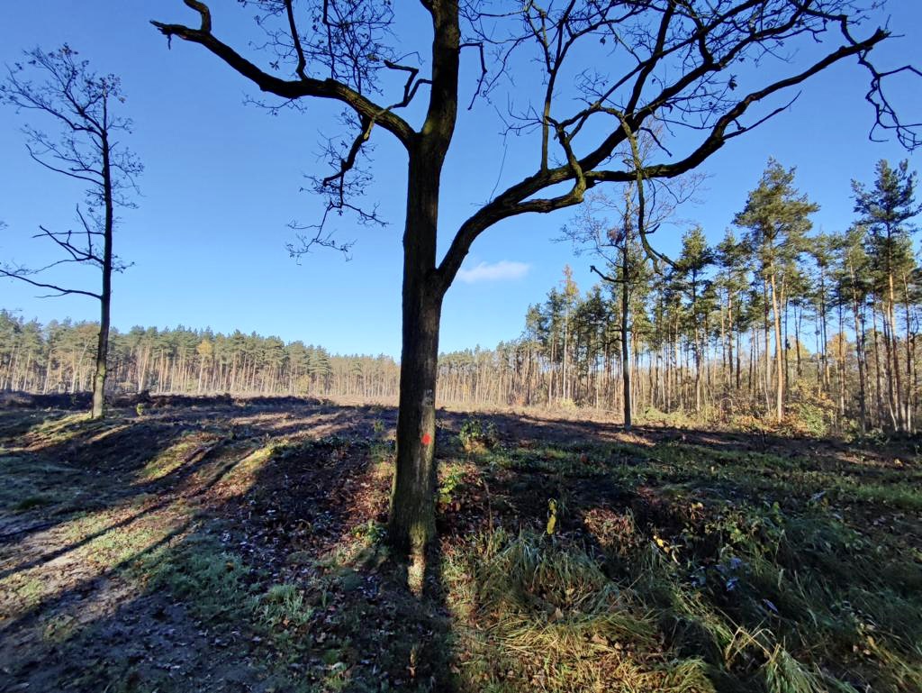 Las Teresiny przy Roszkach gm. Krotoszyn wycinają wszystko jak leci. 12 lat temu był piękny las teraz to jedno wielkie sitko.