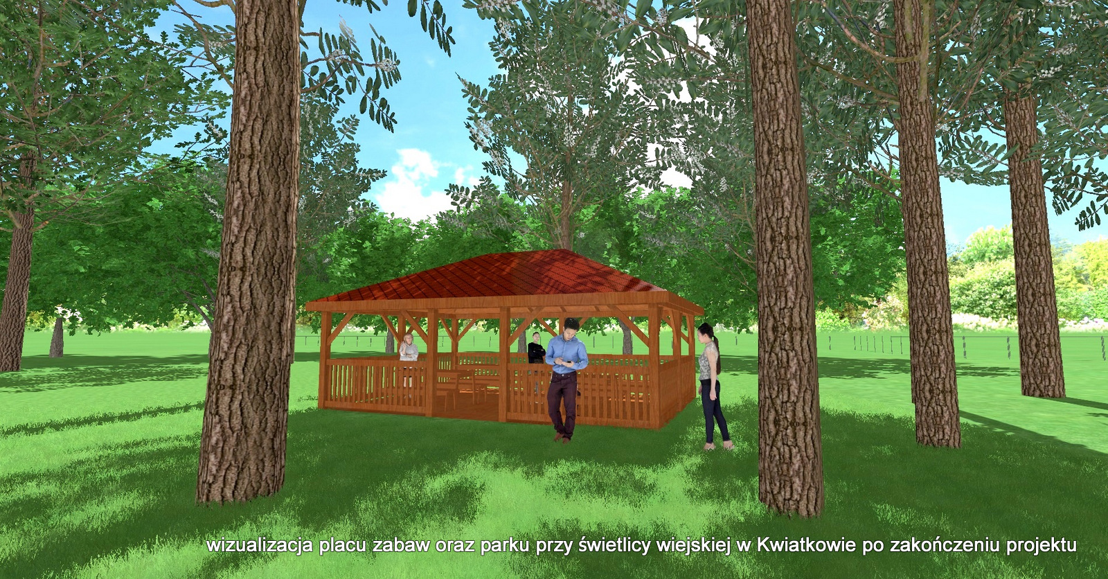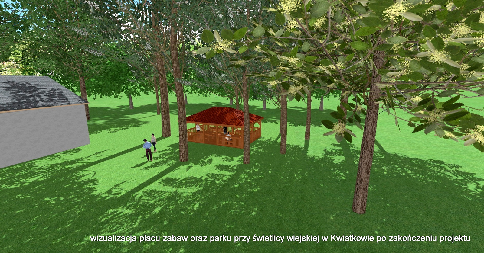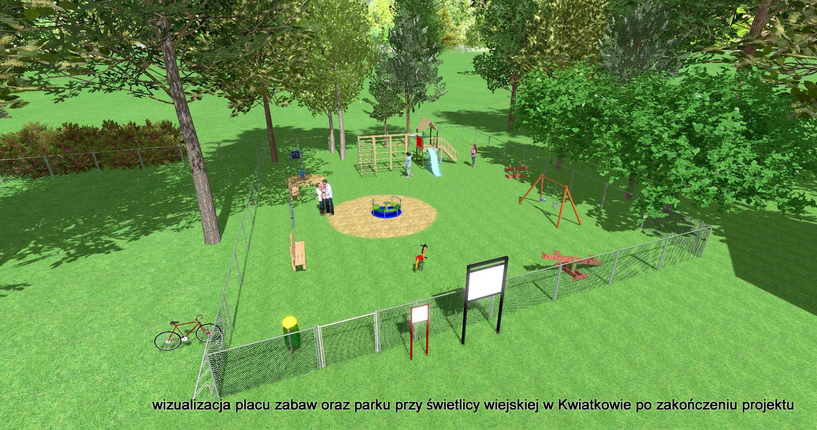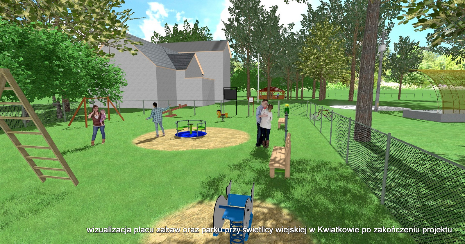 Kwiatków także zyska nowe miejsce przeznaczone do rekreacji i wypoczynku. Na placu przy świetlicy wiejskiej zostanie zbudowana drewniana altana wraz z ławostołami. Zmodernizowany zostanie także plac zabaw, na którym powstaną bujaki i karuleza. „Teren zostanie uporządkowany, pojawi się stojak na rowery, kosz na odpady oraz tablica informacyjna” – dodają urzędnicy.