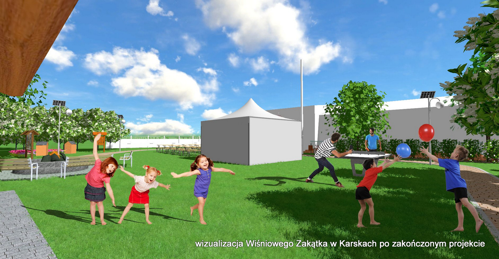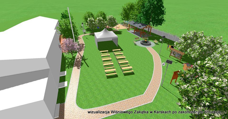 W Karskach zostanie rozbudowany tzw. „Wiśniowy Zakątek”, a więc miejsce, które już zostało zrewitalizowane, ale ma się wzbogacić o kolejne elementy małej architektury. Staną tam trzy lampy solarne oświetlające plac, betonowy stół do gry w tenisa stołowego oraz grę planszową kółko i krzyżyk z tablicą do rysowania. Alejki pokryje kostka brukowa. Będą one prowadzić do poszczególnych stref wypoczynku. „Pojawi się dodatkowa zieleń pnąca, nasadzona w ramach prac społecznych. Mieszkańcy odmalują brudną, nieestetyczną boczną ścianę świetlicy wiejskiej od strony siłowni. Przy palenisku pojawią się dodatkowe ławki. Ze środków funduszu sołeckiego zaplanowano zakup namiotu i ławek do organizacji imprez plenerowych” – mówią pracownicy Urzędu Gminy Ostrów Wielkopolski.