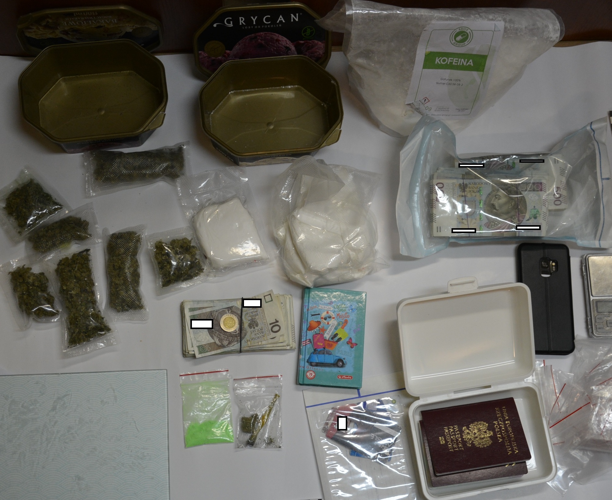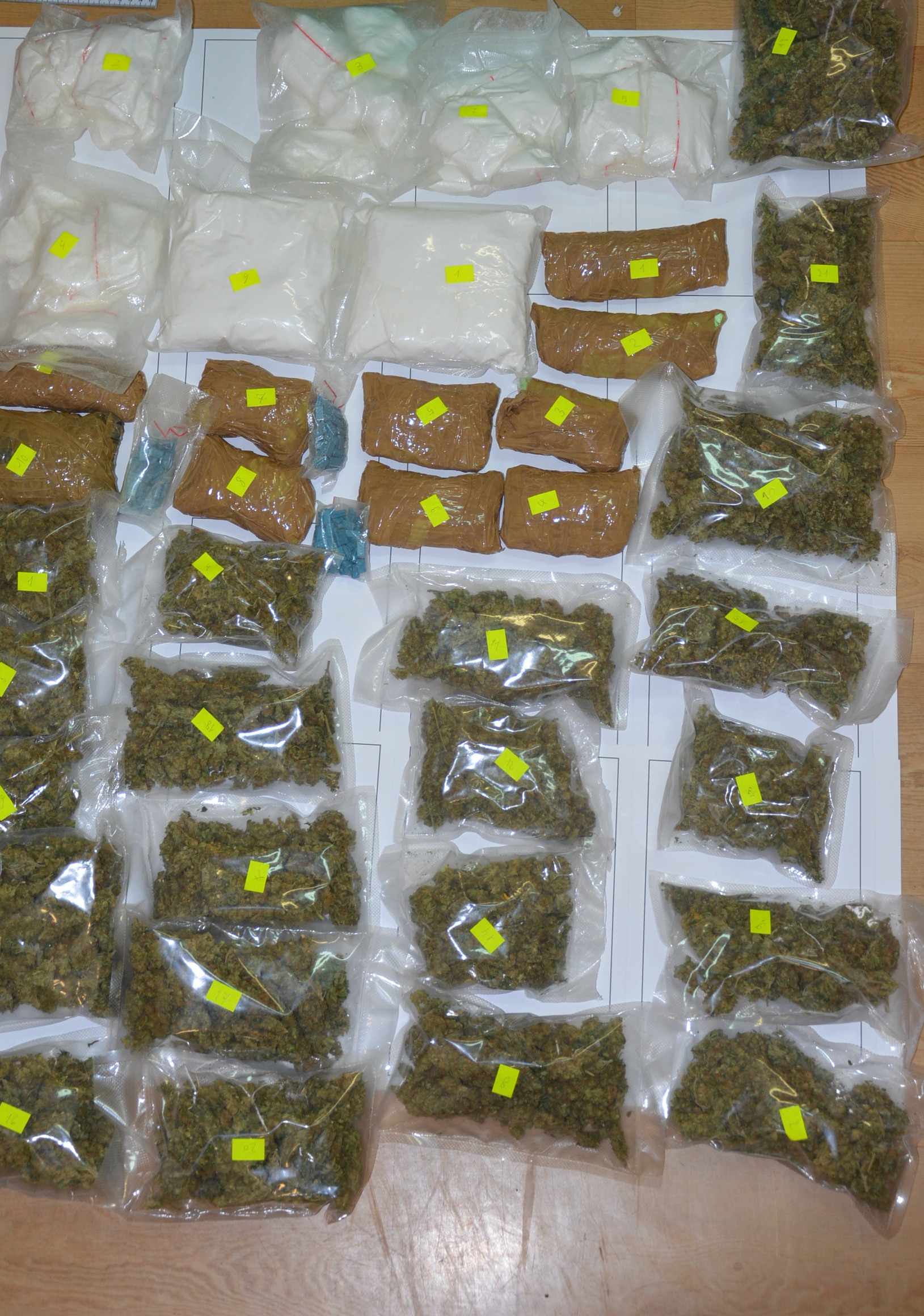 Następnego dnia kryminalni ujawnili kolejne miejsca na terenie powiatu, w których zatrzymany ukrywał narkotyki. Znaleziono w nich ponad 8 kg nielegalnych substancji w tym marihuany, amfetaminy oraz kilka tysięcy tabletek ekstazy. Jak informują policjanci, substancje były przygotowane do sprzedaży. – Zatrzymani usłyszeli zarzuty wprowadzania do obrotu i udział w obrocie znacznymi ilościami środków odurzających i psychotropowych. Prokurator zastosował wobec 24-latka dozór policyjny. 41-latek został aresztowany na trzy miesiące. Czarnorynkową wartość zabezpieczonych narkotyków, szacuje się na około 500 tys. zł. Sprawa ma charakter rozwojowy – wyjaśnia sierż. Justyna Niczke.