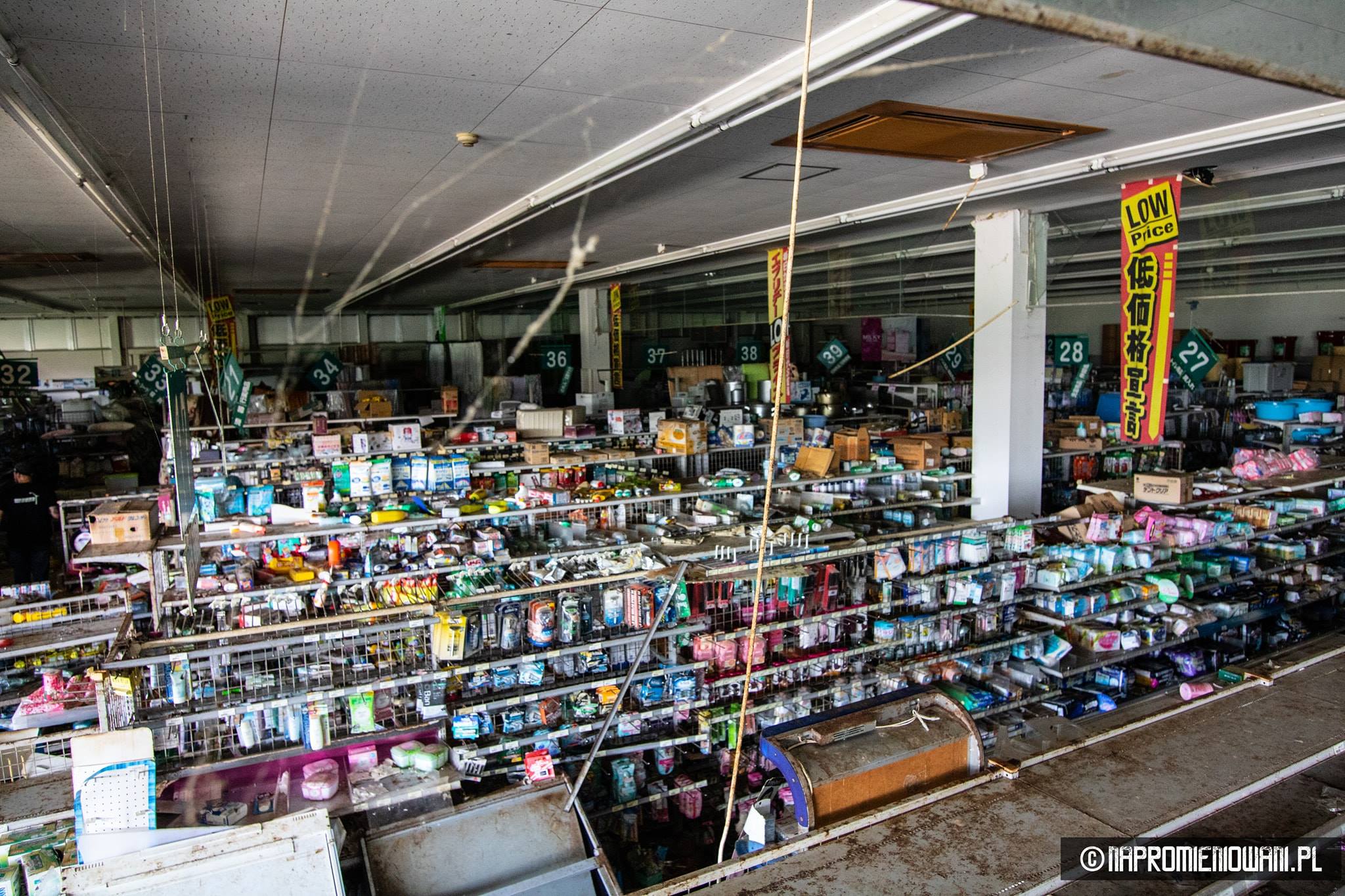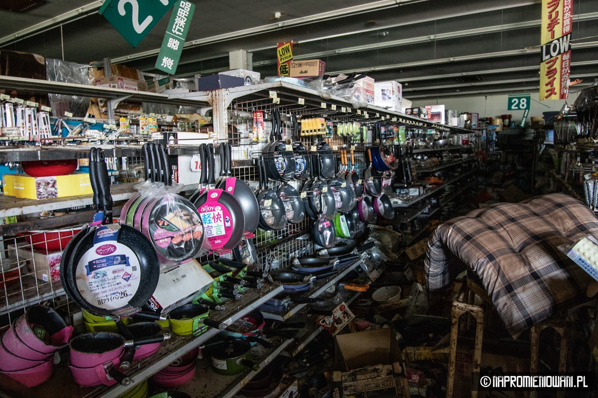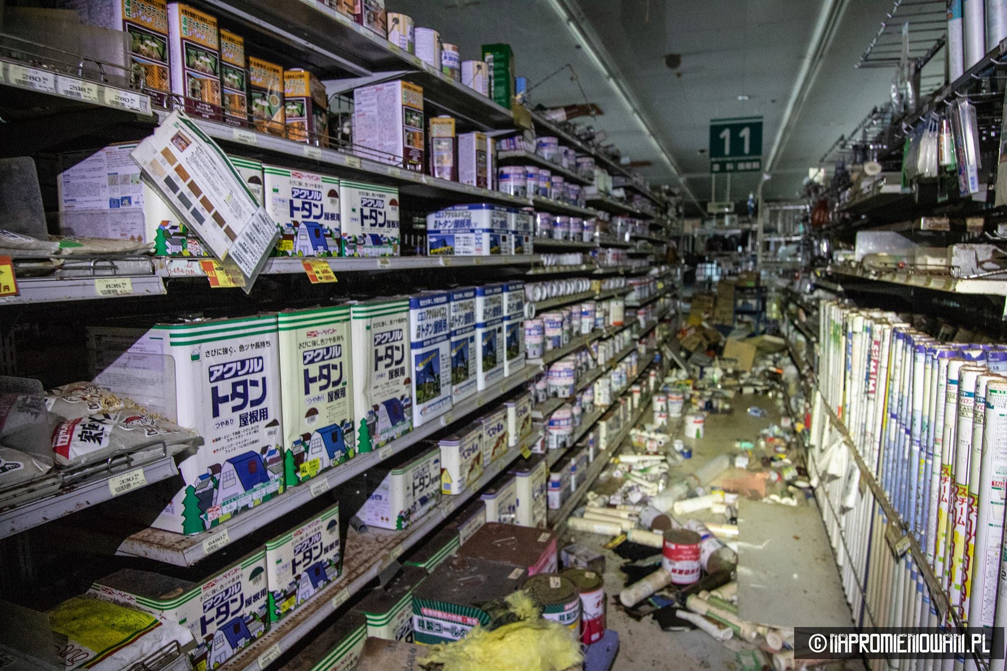 Do „Atomu” wejść się nie dało, ale do opuszczonego supermarketu już tak. Widok w środku też zrobił na Polakach duże wrażenie. Od czasu katastrofy nikt tam nie był. Panowie sięgnęli do zamka, otwarli drzwi i weszli do środka. – Na półkach patelnie, kocia karma, śrubki, wiertła, wyrzynarki, piły, ubrania, materace, alkohole… Część towarów leżała na podłodze. Pewnie po trzęsieniu ziemi. Roztopione lody zalały lodówki, w niektórych częściach smród był okropny, ponieważ część towarów zgniła – dodaje.