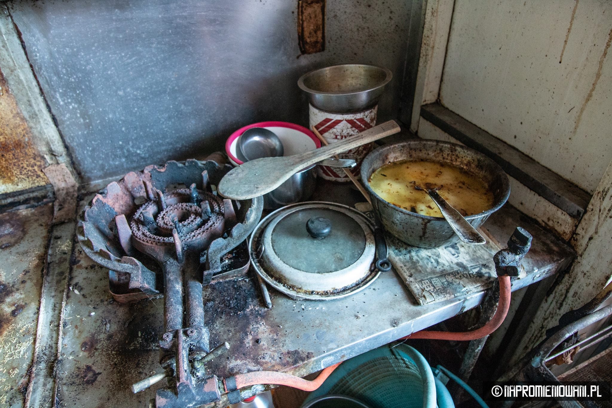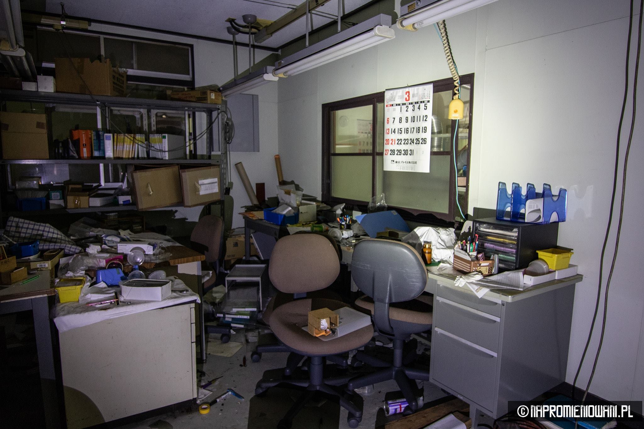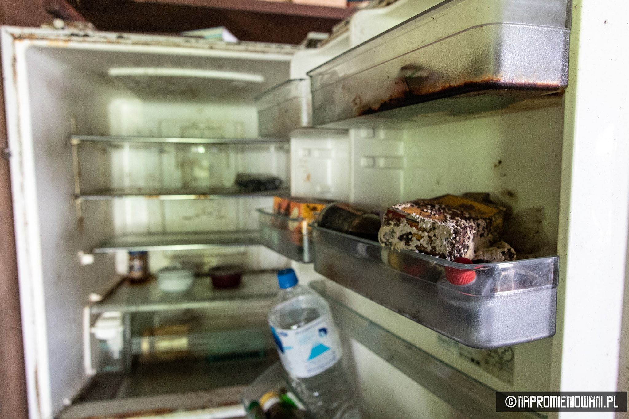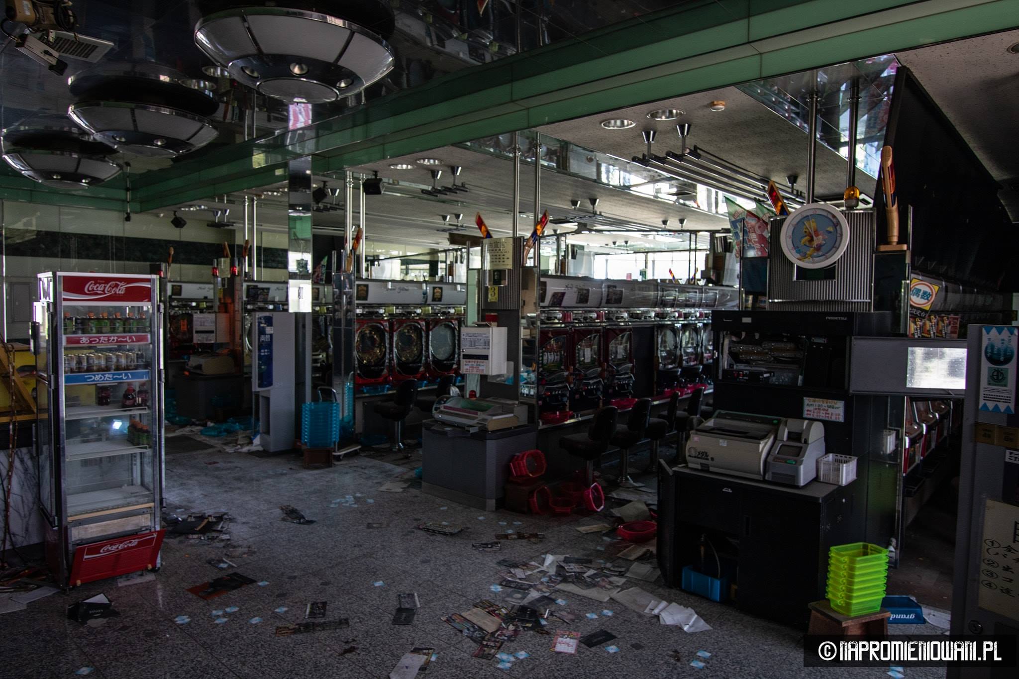 Do „Atomu” wejść się nie dało, ale do opuszczonego supermarketu już tak. Widok w środku też zrobił na Polakach duże wrażenie. Od czasu katastrofy nikt tam nie był. Panowie sięgnęli do zamka, otwarli drzwi i weszli do środka. – Na półkach patelnie, kocia karma, śrubki, wiertła, wyrzynarki, piły, ubrania, materace, alkohole… Część towarów leżała na podłodze. Pewnie po trzęsieniu ziemi. Roztopione lody zalały lodówki, w niektórych częściach smród był okropny, ponieważ część towarów zgniła – dodaje.