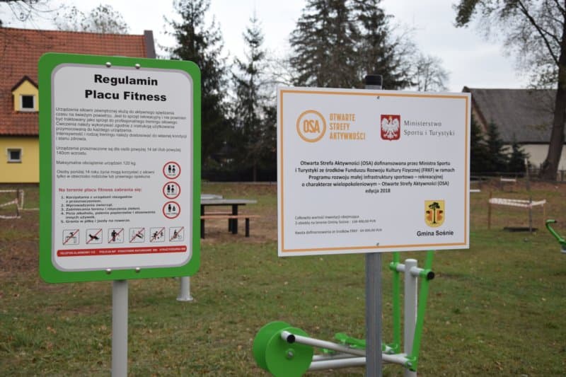 Gmina Sośnie złożyła wniosek o dofinansowanie stworzenia trzech stref aktywności. Ministerstwo zdecydowało wesprzeć wszystkie propozycje i przeznaczyło na ten cel 64 tysiące złotych. Całość inwestycji pochłonęła ponad 130 tysięcy złotych.