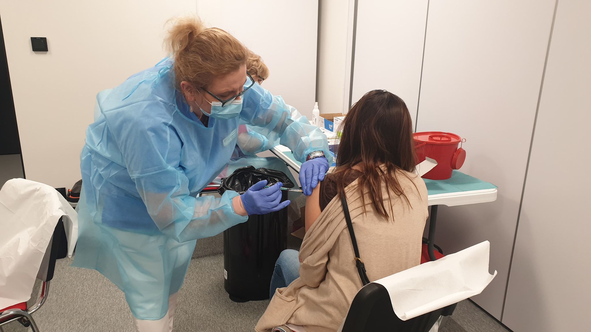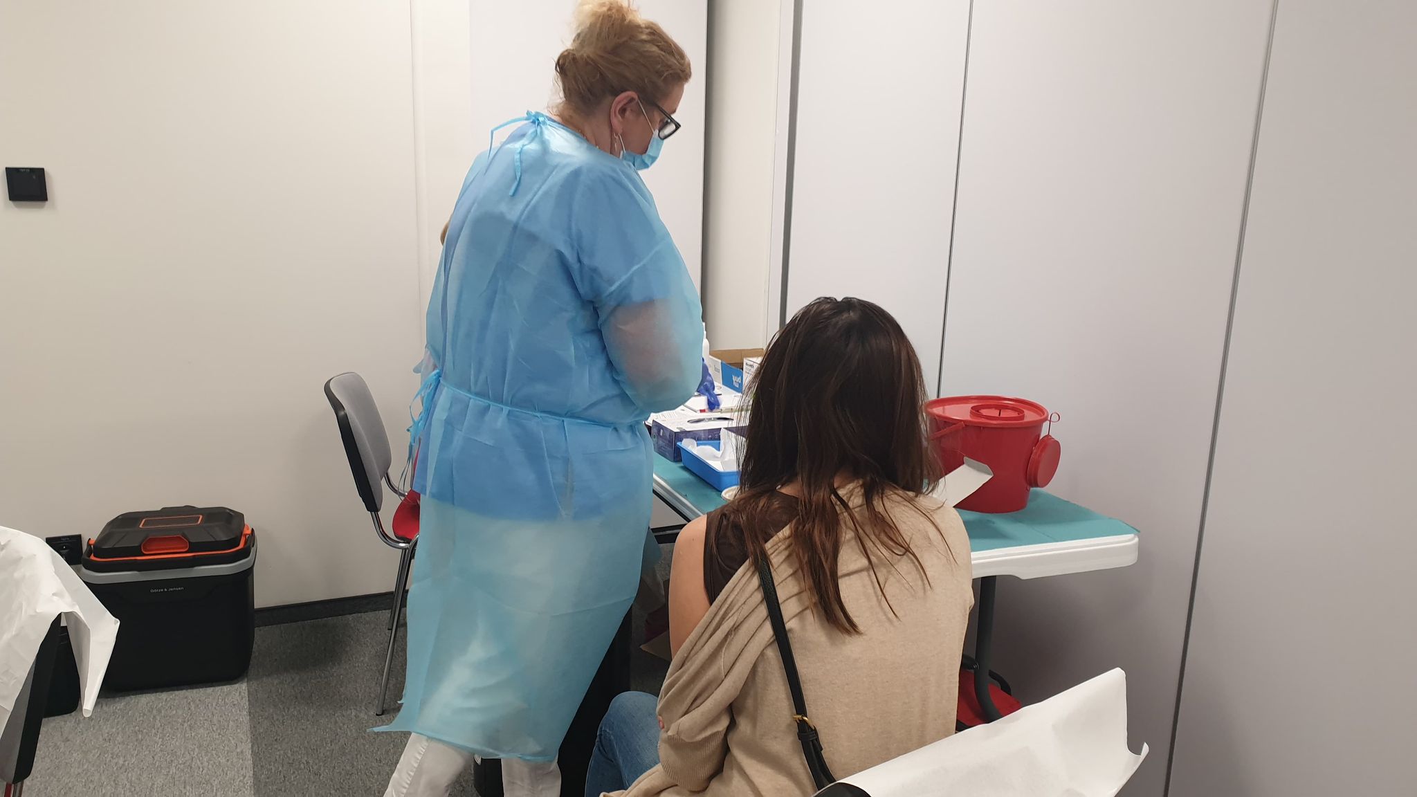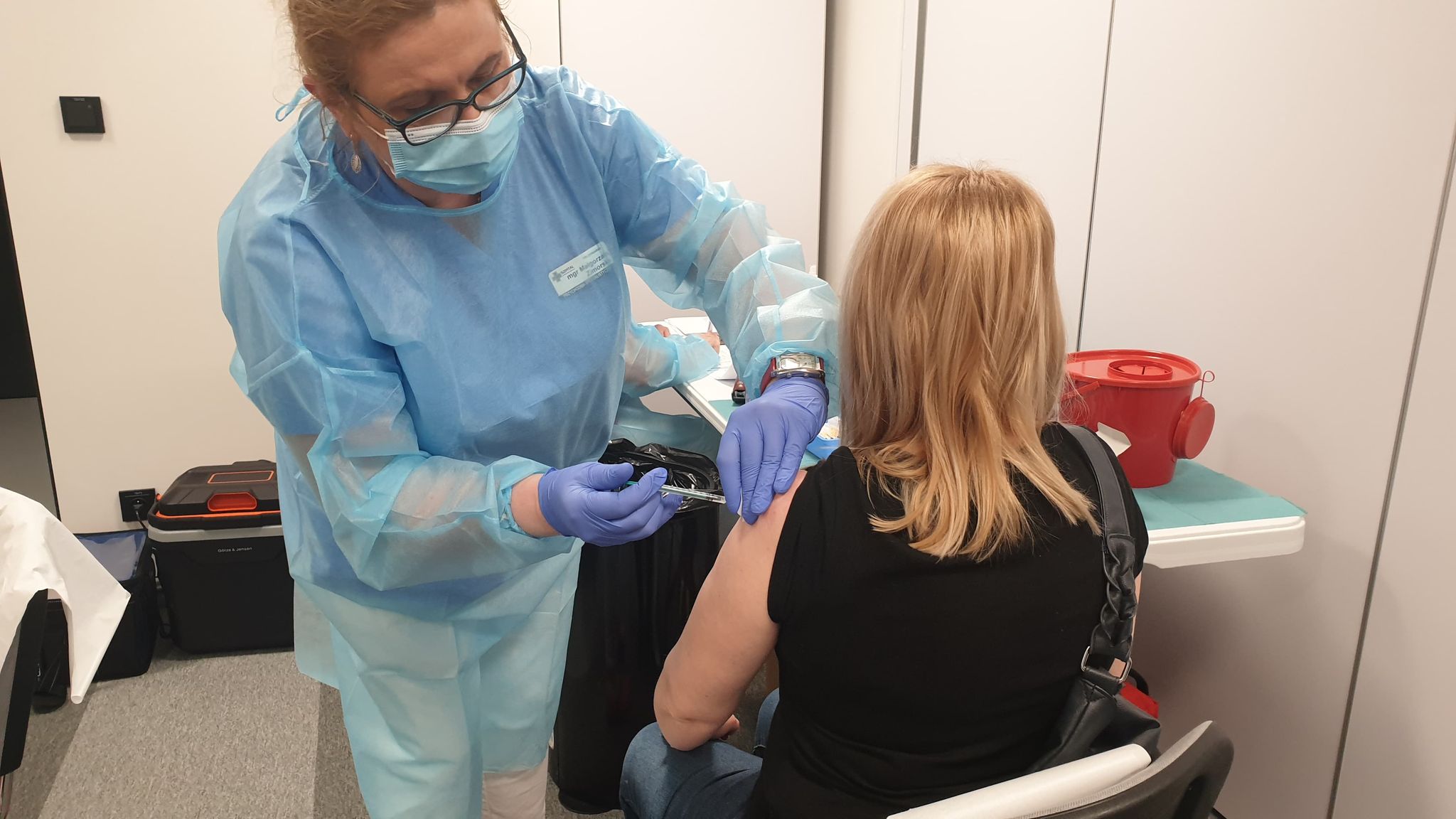 Pedagodzy przed szczepieniem odbyli jeszcze krótką rozmowę z lekarzem i zasiedli na krześle, odsłaniając lewe ramię. Szczepienie trwało zaledwie kilkanaście sekund.