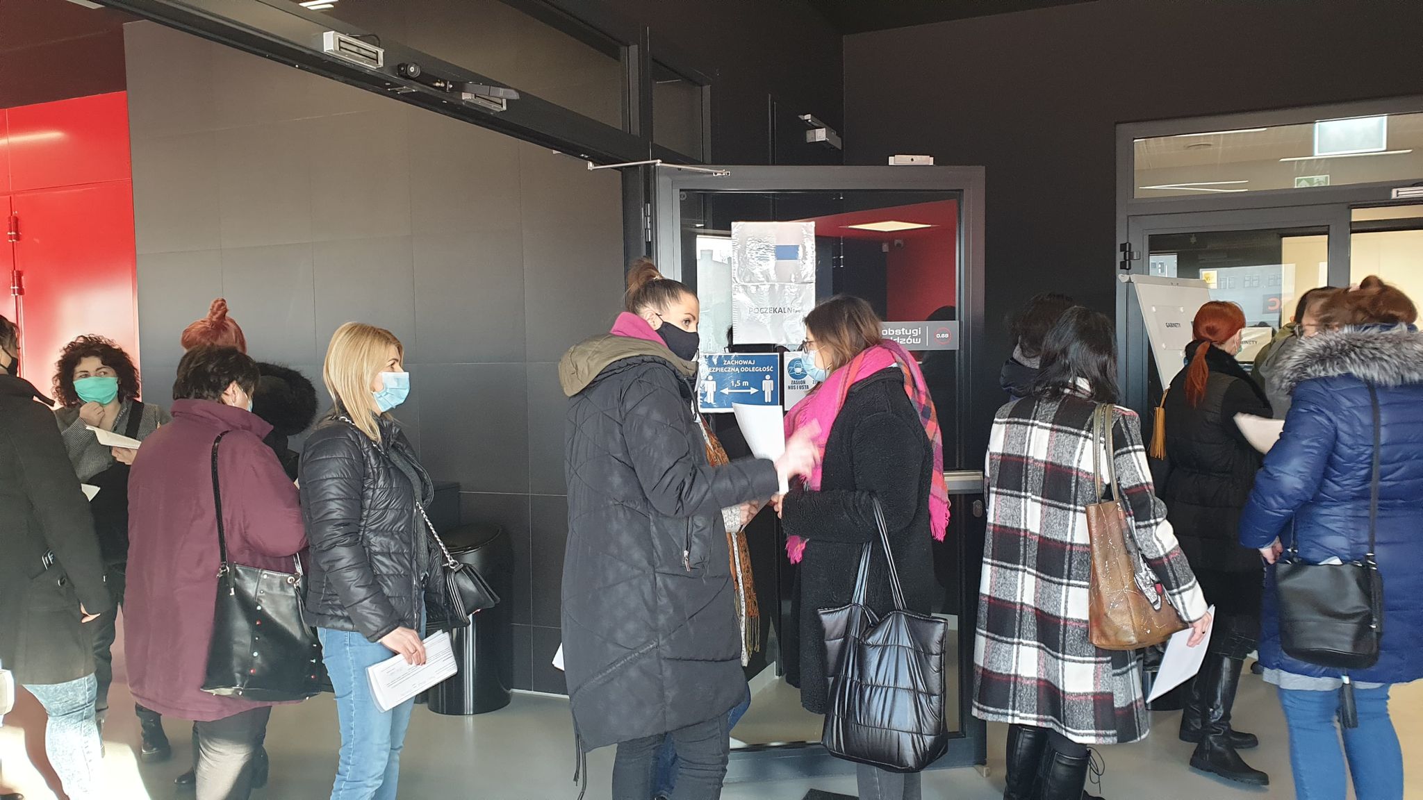 Arena Ostrów wypełniła się dzisiaj nauczycielami, którzy zadeklarowali swoją chęć na przyjęcie szczepionki przeciwko COVID-19. Drzwi hali widowiskowo-sportowej otworzyły się o godzinie 9.00. Pierwszy etap to obowiązkowe mierzenie temperatury, podanie swoich danych osobowych i wypełnienie stosownych formularzy.