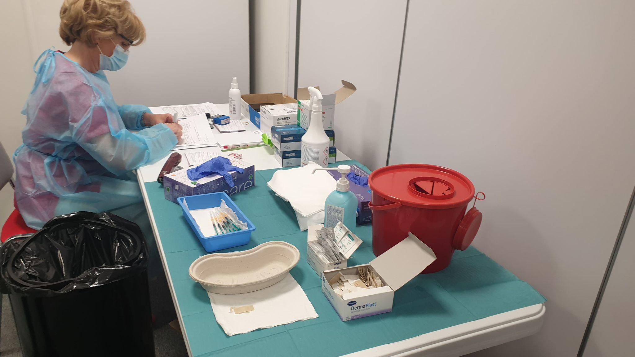 Organizacja szczepienia pod zdechłym azorkiem. Zamiast powiadomić ludzi, którzy mają się szczepić, że powinni sobie ściągnąć druk ankiety i wypełnić ja w domu, to zaprasza się ich co 20 minut, a sama strona medyczno administracyjna trwa dłużej. W efekcie narastający tłumek, kolejki przed halą, duchota w hali no i omdlenie jednej z czekających. Może ktoś, kto organizuje szczepienia ze strony szpitala, uruchomi myślenie? Czy to tak trudno zorganizować?