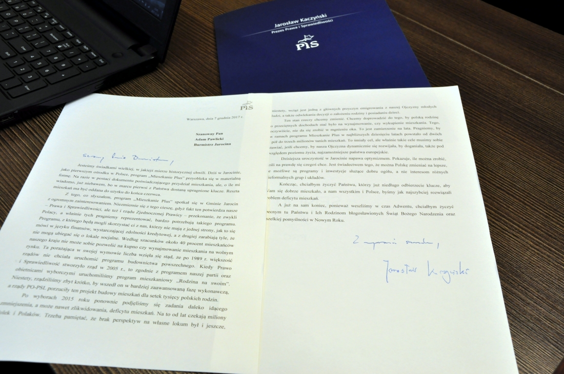 Znaczenie stworzenia godnych warunków mieszkaniowych także w kontekście powrotów Polaków z emigracji podkreślił prezes PiS, Jarosław Kaczyński w liście skierowanym do burmistrza Jarocina, Adama Pawlickiego: Brak perspektyw na własne lokum był i niestety wciąż jest jedną z głównych przyczyn emigrowania z naszej Ojczyzny młodych ludzi, a także odwlekania decyzji o złożeniu rodziny i posiadania dzieci. Ten stan rzeczy chcemy zmienić. (…) Dzisiejsza uroczystość w Jarocinie napawa optymizmem. Pokazuje, ile można zrobić, jeśli naprawdę się czegoś chce. Jest świadectwem tego, że Polskę można zmieniać na lepsze, że możliwe są programy i inwestycje służące dobru ogółu.