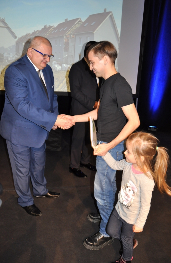 – Dzisiaj dzień w którym otrzymacie Państwo adres, numer i przydział konkretnego mieszkania. Te kilka najbliższych miesięcy macie po to, aby zorganizować sobie życie, tak by za kilka miesięcy móc rozpocząć je w nowym miejscu – powiedział burmistrz Jarocina Adam Pawlicki, rozpoczynając uroczystość. – To czas na rozwiązanie umów lub dopełnienie wszelkich formalności w miejscach, w których obecnie przebywacie w Polsce, jak i poza jej granicami. Wracają bowiem do nas rodziny, które wiele lat przebywały poza naszym krajem, a chcą z powrotem osiedlić się w Jarocinie – podkreślił burmistrz Pawlicki. W ślad za tym pierwszy w Polsce przydział na mieszkanie w ramach programu „Mieszkanie Plus” otrzymał pan Krzysztof Decowski, któremu nowe mieszkanie pozwoli na powrót z emigracji. W imieniu przyszłego najemcy, przebywającego w Wielkiej Brytanii, decyzję odebrała pani Renata Siankowska. – Dajecie dobry przykład i mam nadzieję, że za waszym przykładem pójdą inne samorządy. Niech ten symboliczny przykład rodziny, powracającej z Wielkiej Brytanii do Jarocina, będzie powielany w całej Polsce – zaznaczył w trakcie uroczystości minister Andrzej Adamczyk.