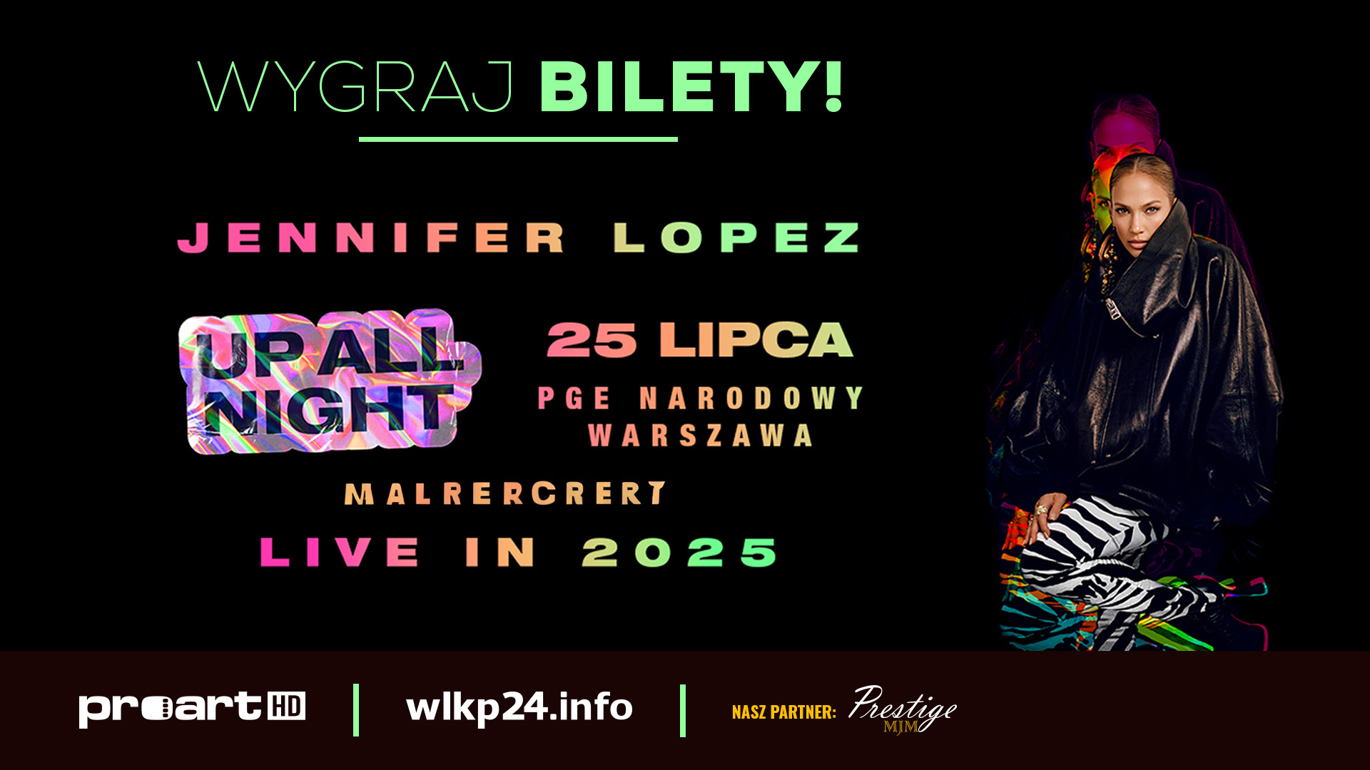 Trwa konkurs Telewizji Proart, portalu wlkp24.info oraz agencji Prestige MJM, w którym do wygrania są trzy podwójne bilety na koncert Jennifer Lopez, który odbędzie się w najbliższy piątek, 25 lipca na PGE Narodowym w Warszawie. To muzyczno-taneczne widowisko jednej z największych gwiazd światowego showbiznesu będzie prawdziwą gratką dla fanów niezapomnianych wrażeń.