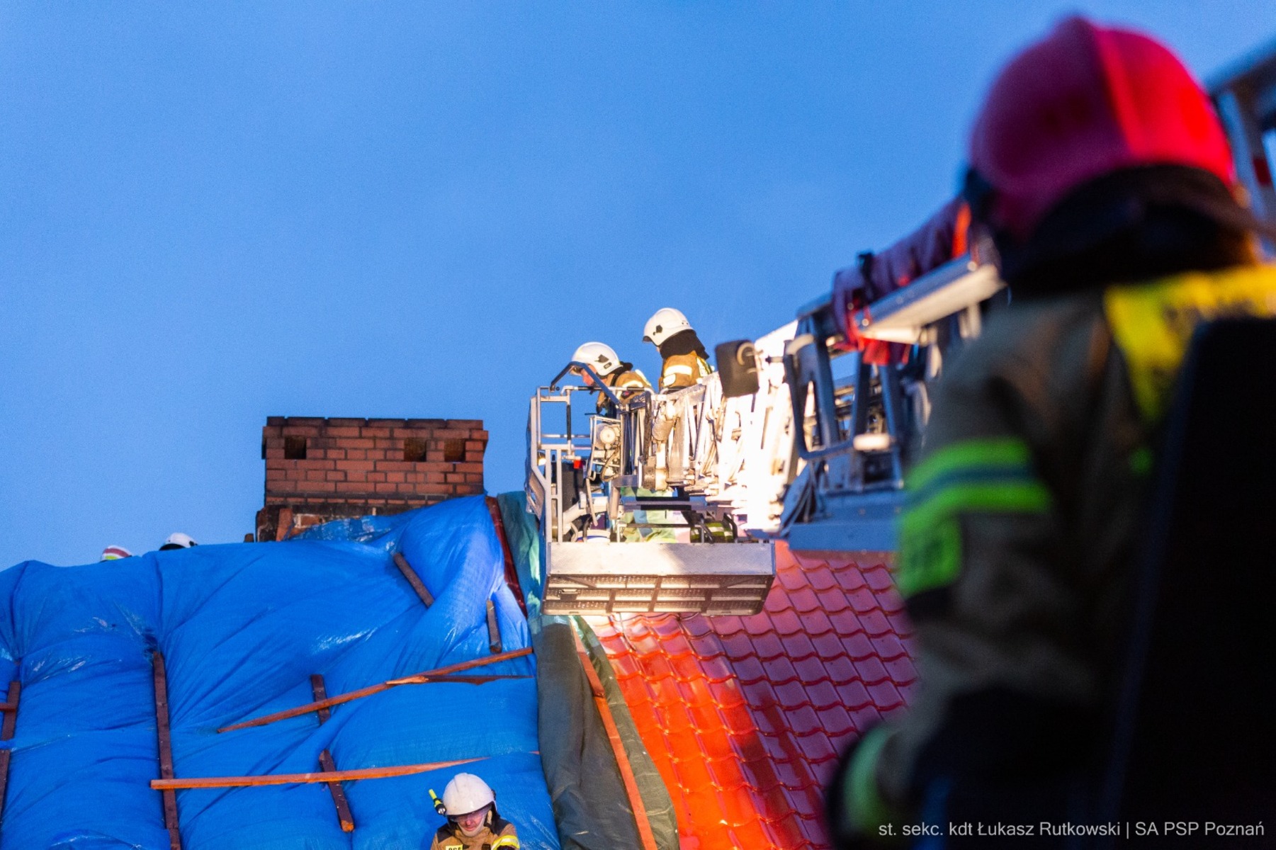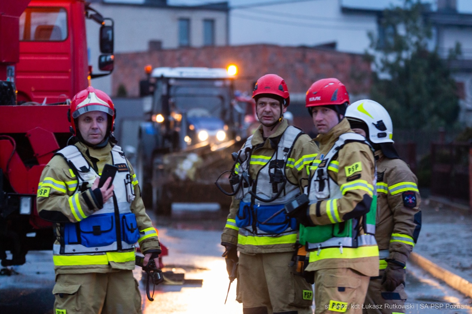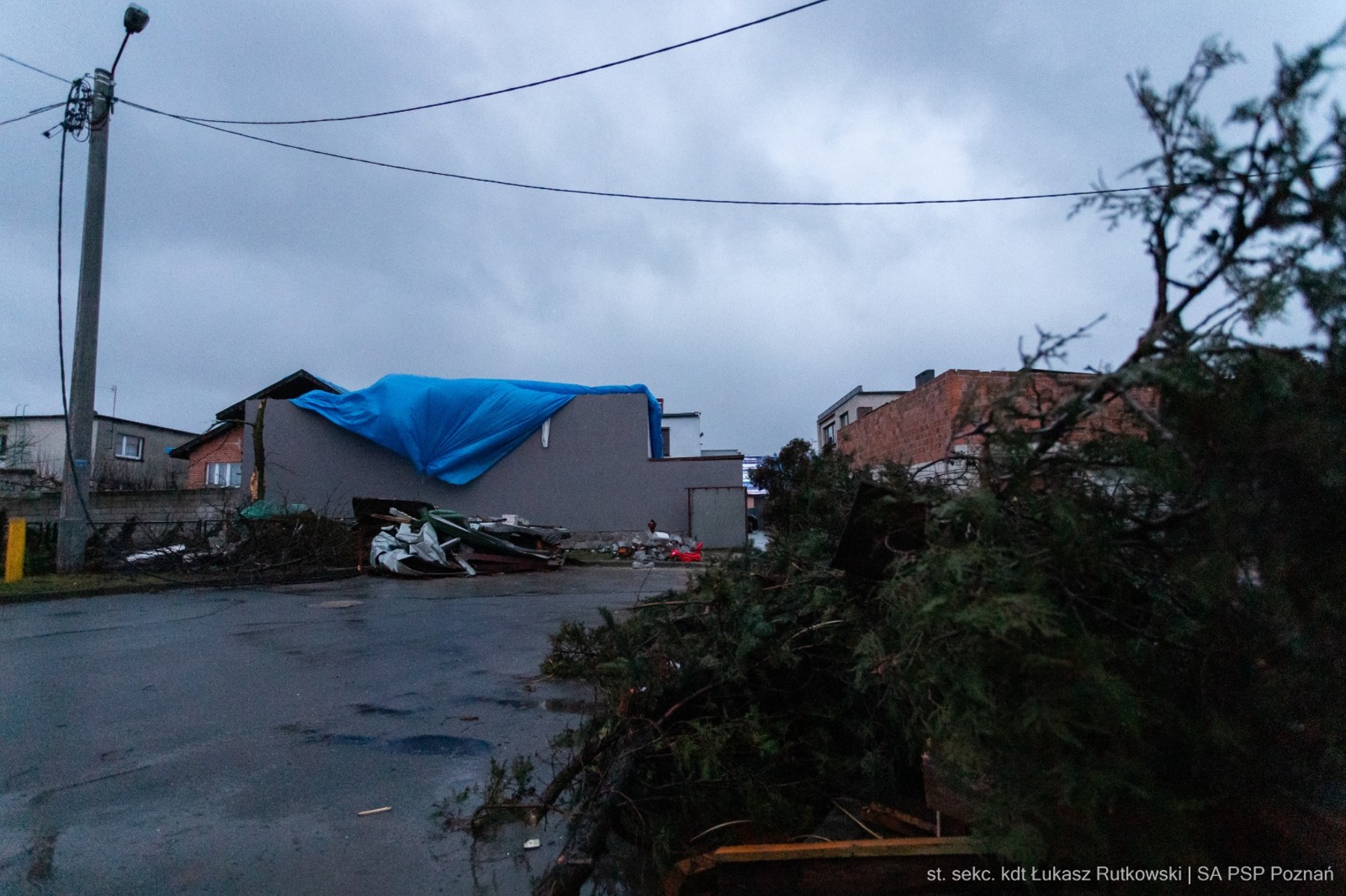 Na miejsce skierowano dziesiątki zastępów straży pożarnej nie tylko z powiatu pleszewskiego, ale także z ostrowskiego, kaliskiego i z Poznania. Ze stolicy województwa przyjechali także przedstawiciele tamtejszej szkoły aspirantów, a dokładnie szkolna kompania, która pomagała w usuwaniu zniszczeń. Mieszkańcy, strażacy, druhowie, a także sąsiedzi przez cały dzień ciężko pracowali, aby ratować ratować, co się dało. Będą one trwały jeszcze długo, ale w pierwszej kolejności chodziło o jak najszybsze zabezpieczenie dobytku, bo pogoda była zmienna przez cały dzień. „Dwudziestu kadetów oraz trzech funkcjonariuszy kadry dowódczej będzie pomagało w usuwaniu skutków silnych wiatrów w powiecie pleszewskim” – informuje w komunikacie mł. bryg. Łukasz Kwas ze Szkoły Aspirantów Państwowej Straży Pożarnej w Poznaniu.