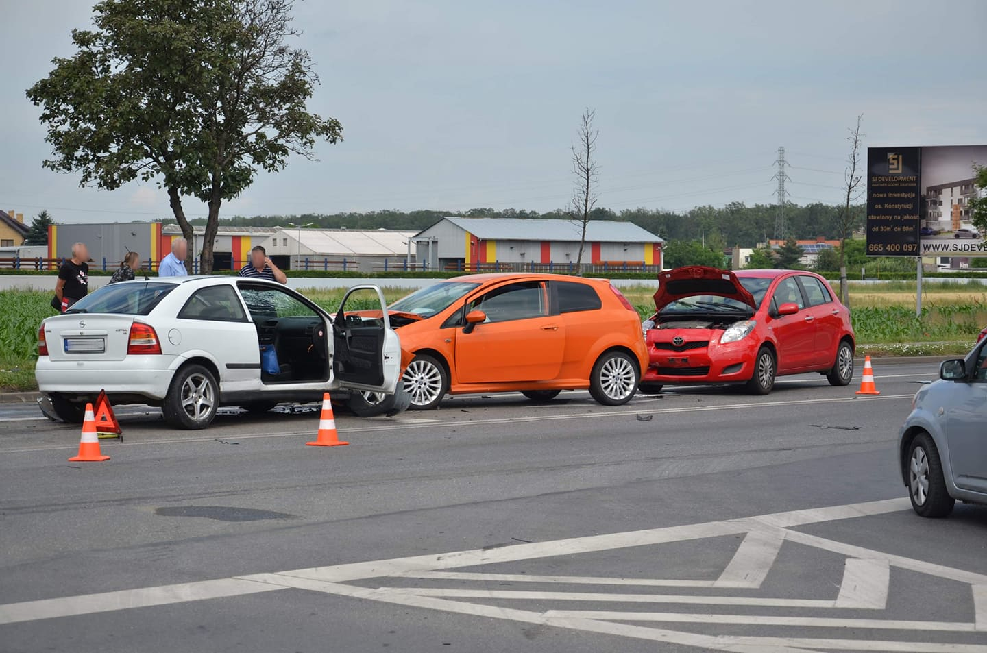 Fiat, opel, toyota i nissan były uczestnikami karambolu, do którego doszło ok. 13.00 w piątek na ul. Powstańców Wielkopolskich w Jarocinie. Na prostym odcinku drogi w okolicach centrum handlowego i dwóch supermarketów, tuż przy wjeździe na ich teren nieoczekiwanie zderzyły się cztery auta.