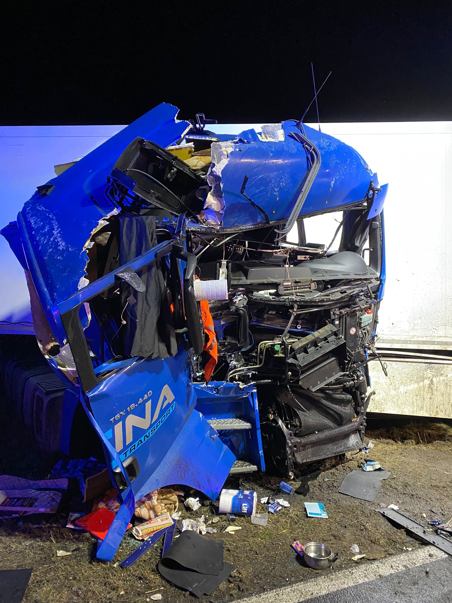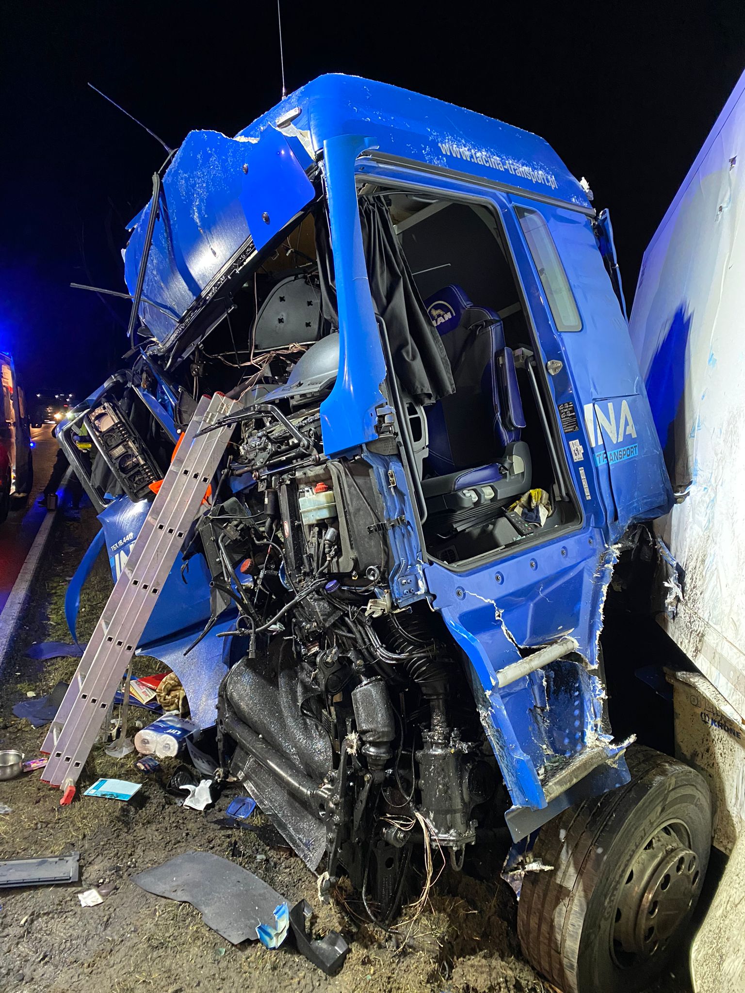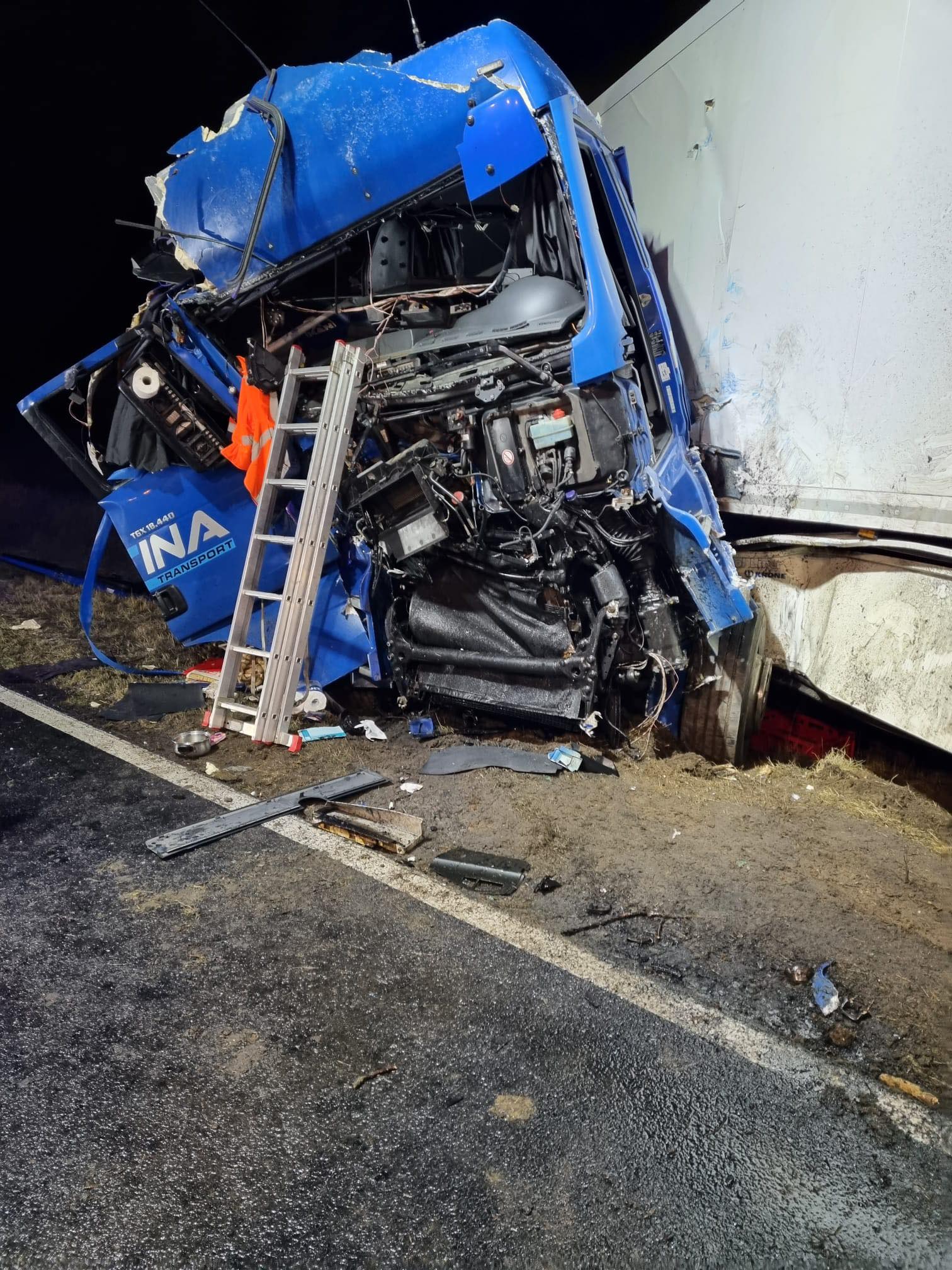 Do wypadku doszło około godziny 2.00 w nocy na drodze wojewódzkiej nr 437. Kierowca samochodu ciężarowego uderzył w drzewo. Na miejscu pojawiły się służby ratunkowe, a ze zgłoszenia wynikało, że kierowca jest zakleszczony w kabinie pojazdu. – Po dojeździe na miejsce, zastano dość mocno zniszczony pojazd, w którym znajdował się przytomny kierowca. Strażacy przy użyciu narzędzi hydraulicznych, wykonali dostęp do kierowcy ciężarówki. Następnie, przy pomocy ratowników, poszkodowany opuścił pojazd. Załoga ZRM podjęła decyzję o zabraniu kierowcy pojazdu do szpitala na dodatkowe badania – poinformował kpt. Marcin Nyczka z Komendy Powiatowej PSP w Gostyniu.