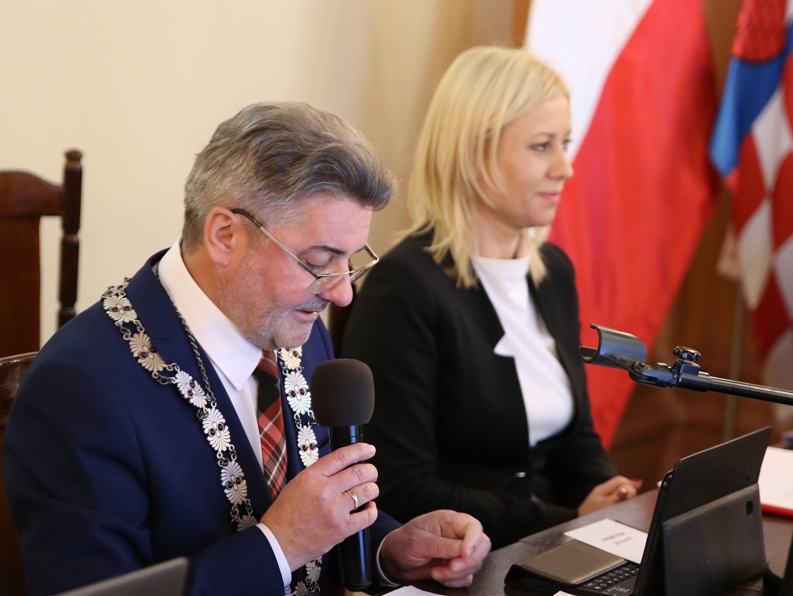 Wybrano też przewodniczącego rady, którym został Janusz Pęcherz, który otrzymał 12 głosów. Jego kontrkandydat Dariusz Grodziński – 11. Radni zdecydowali też o wyborze trzech wiceprzewodniczących. Zgłoszono Tadeusza Skarżyńskiego (15 głosów „za” i 8 „przeciw”) oraz Karolinę Pawliczak (22 głosy „za” oraz 1 „przeciw”). Oboje zostali więc zastępcami przewodniczącego.
