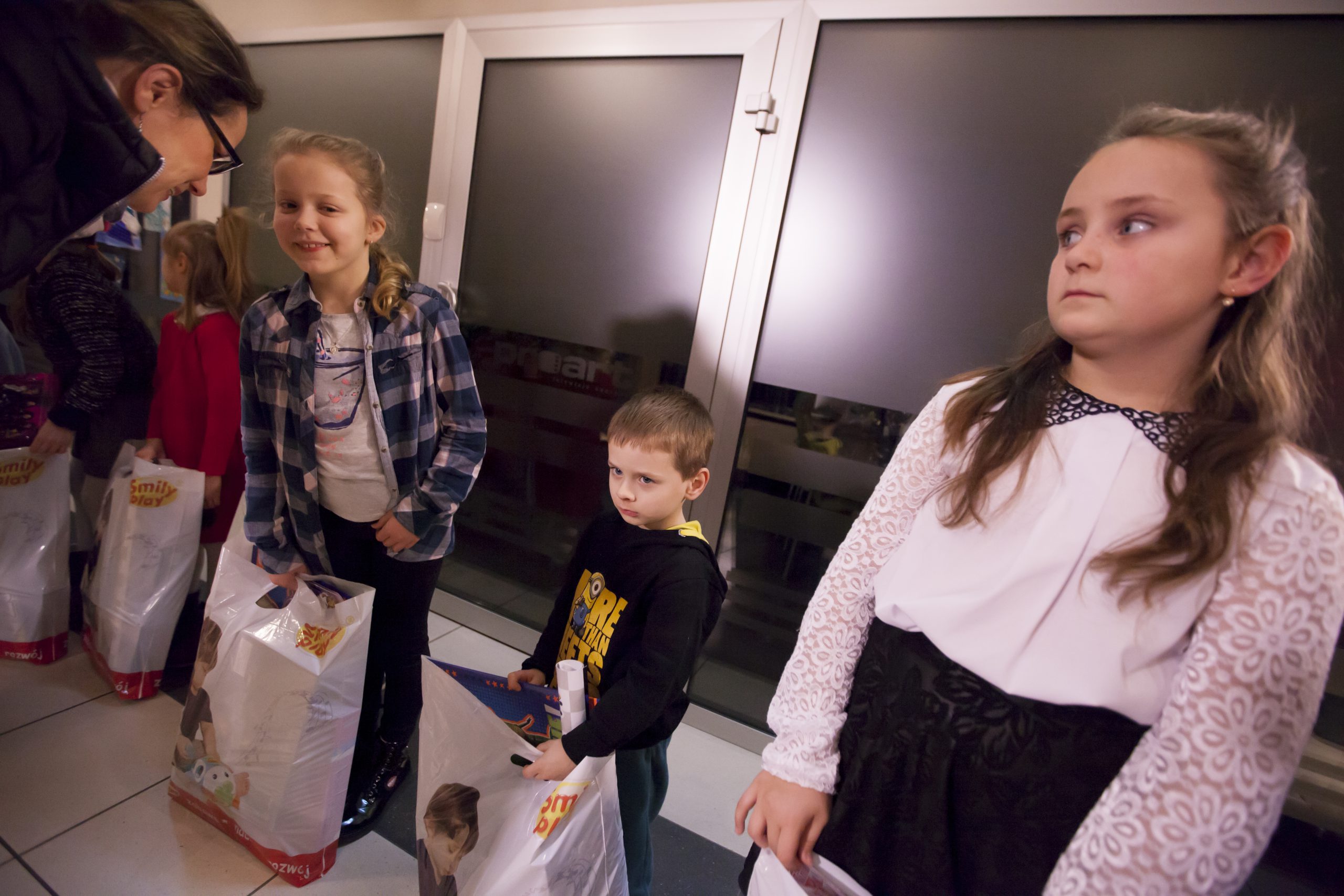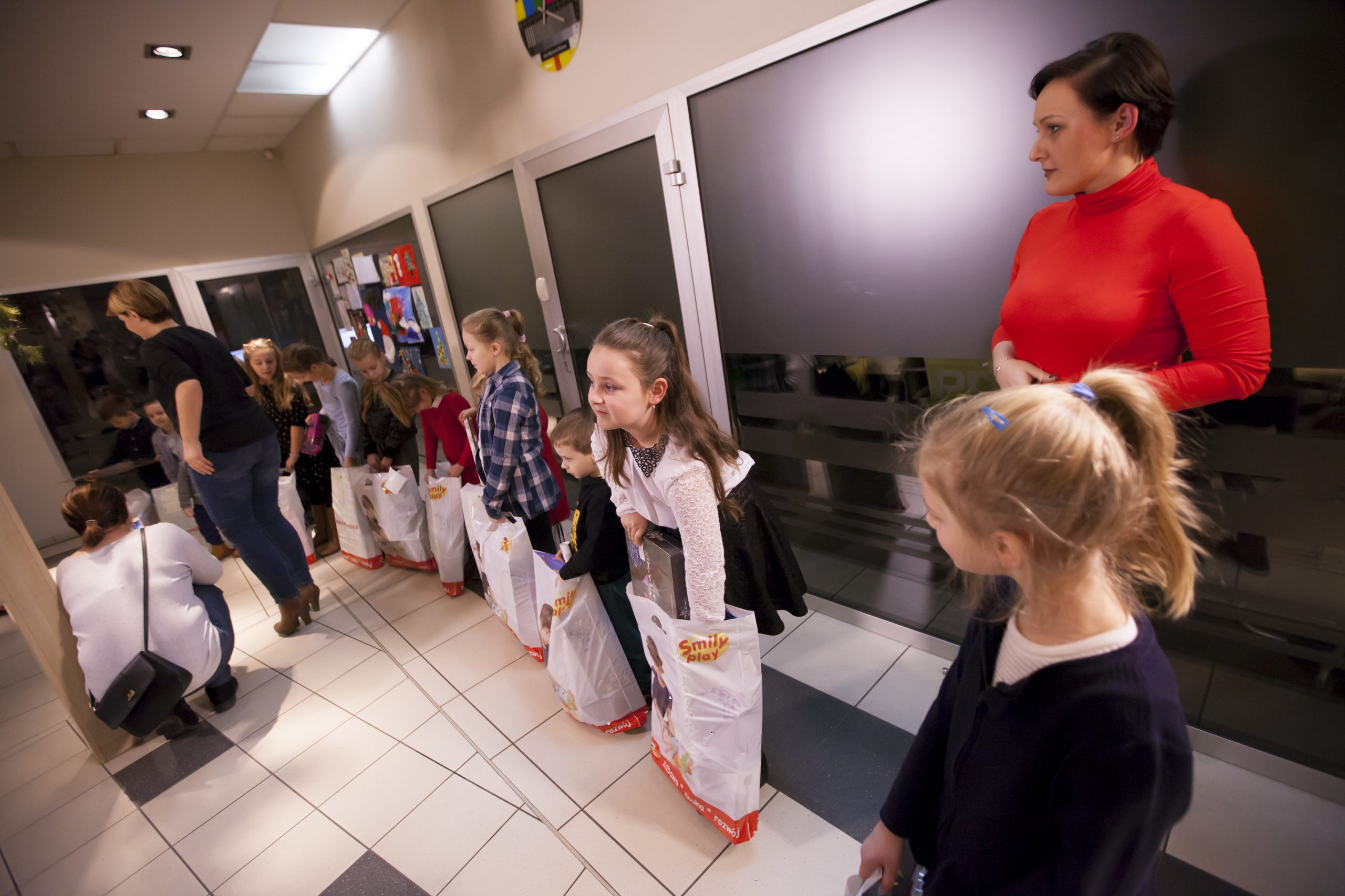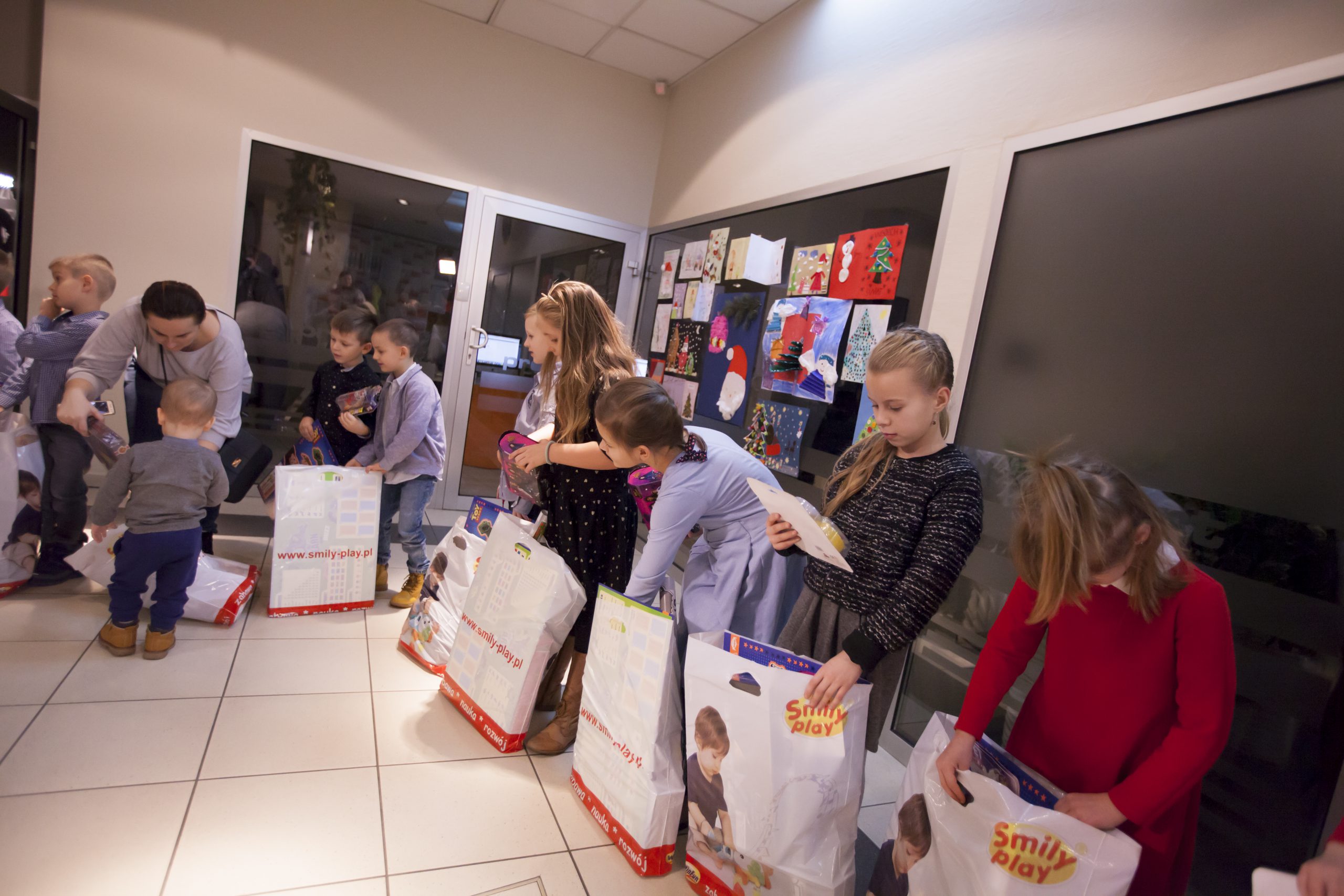 „Święty Mikołaj” miał jednak ograniczony budżet 🙂 dlatego nagrodził dwadzieścia najlepszych prac. Dziś w siedzibie telewizji Proart mali widzowie wraz z rodzicami odebrali torby z podarunkami.
