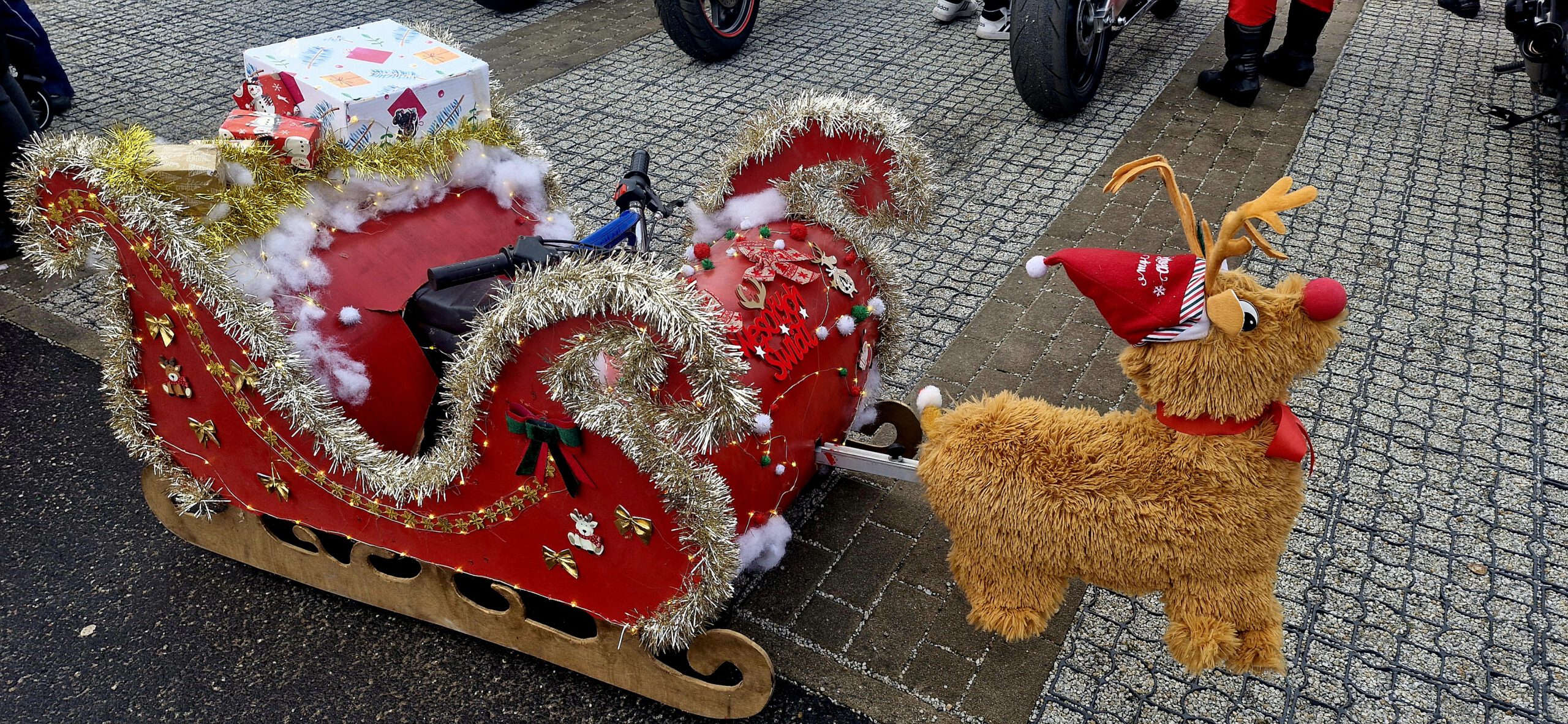 Pasjonaci motoryzacji na barwnie przystrojonych motocyklach czy quadach w strojach świętego Mikołaja kolejny rok z rzędu zebrali się w niedziele przedpołudnie pod 3mk Areną Ostrów i rozpoczęli akcję charytatywną Motomikołaje 2025.