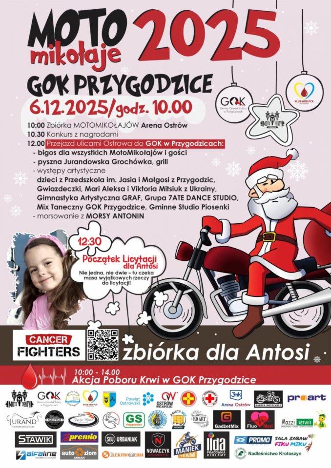 Zaczęło się od słodkiego poczęstunku i kawy, a ok. południa motocykliści w mikołajkowych strojach przejechali ulicami miasta aż do Przygodzic. Tam, na placu przy Gminnym Ośrodku Kultury zaplanowano koncerty, występy artystyczne oraz inne atrakcje, a po nich przyjdzie czas na licytacje. Tym razem będzie można pomóc Tosi, która walczy z białaczką limfoblastyczną.