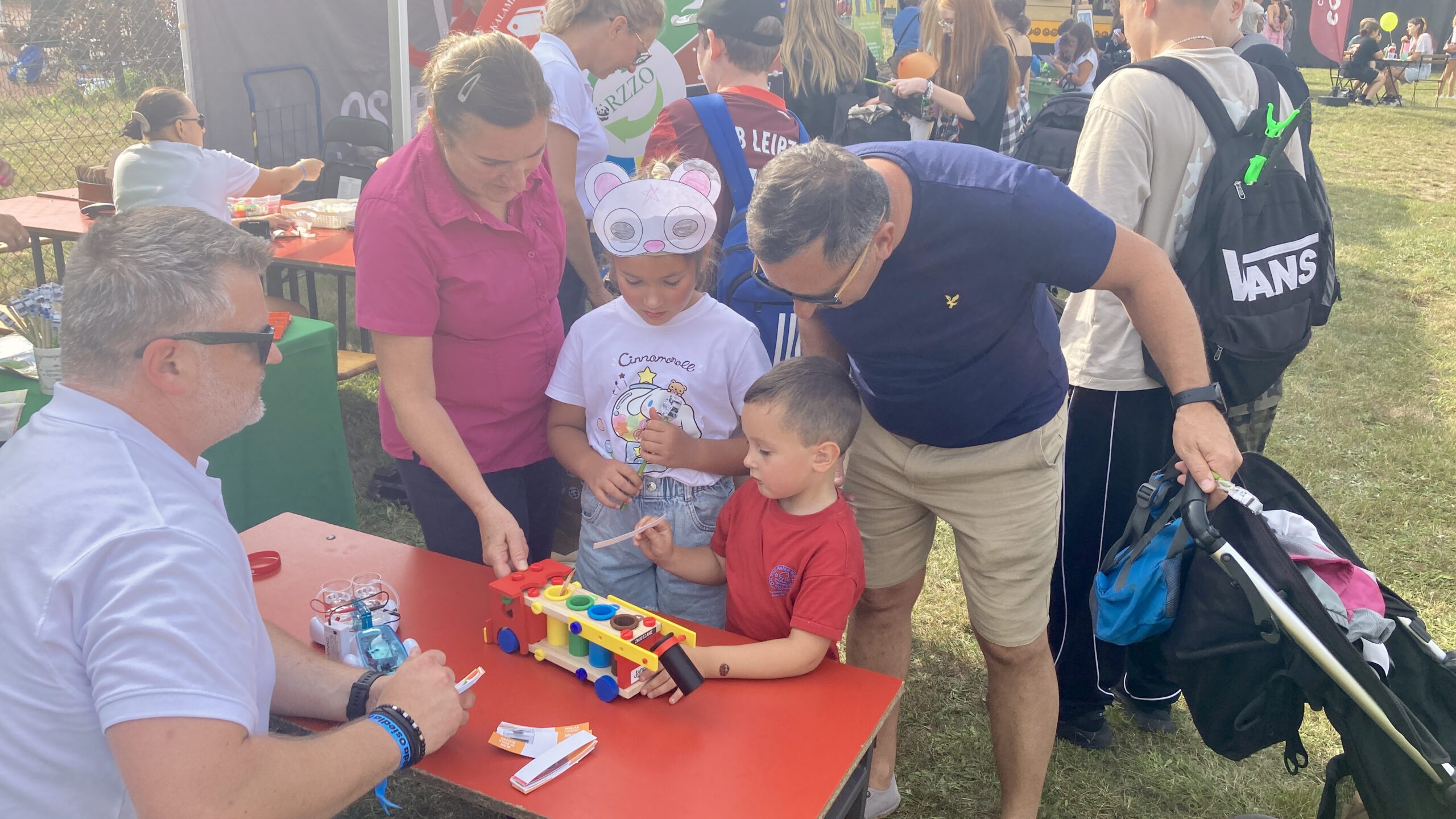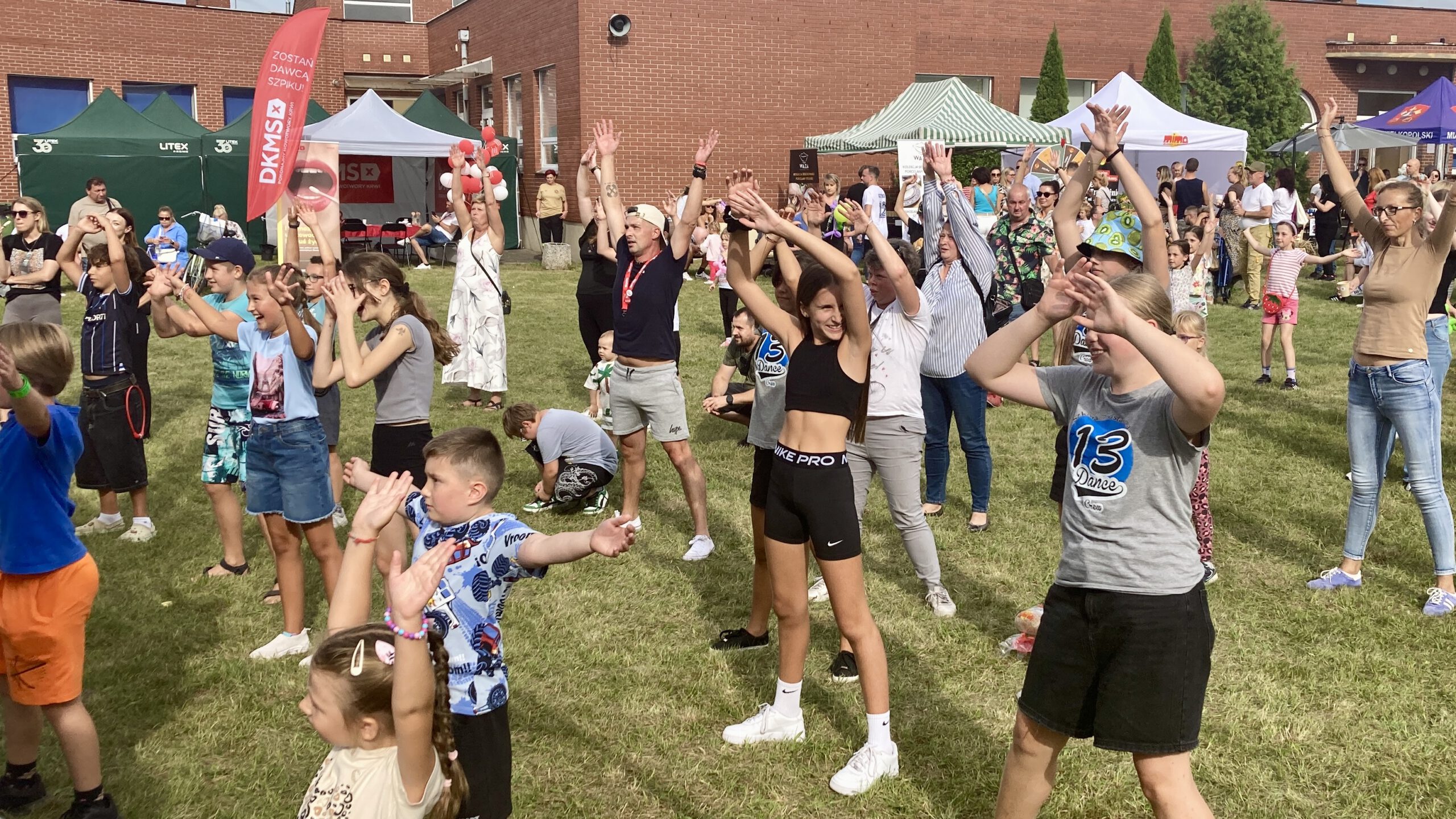 Teren przy Szkole Podstawowej nr 13 w Ostrowie Wielkopolskim jest szczelnie wypełniony stoiskami, ale przede wszystkim mieszkańcami, którzy ochoczo przyłączają się do wspólnej zabawy.