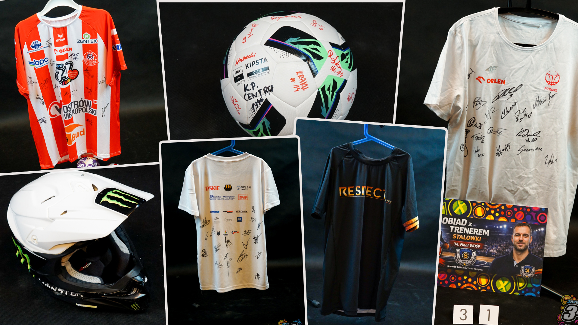 Także piłkarze dorzucili coś od siebie. Ostrovia 1909 na przykład przekazała voucher na wejście na wszystkie mecze domowe pierwszej drużyny w rundzie wiosennej sezonu 2025/2026, udział w treningu zespołu seniorów, a także zestaw gadżetów w tym koszulkę z autografami zawodników. Centra Ostrów Wielkopolski przekazała piłkę z autografami drużyny.
