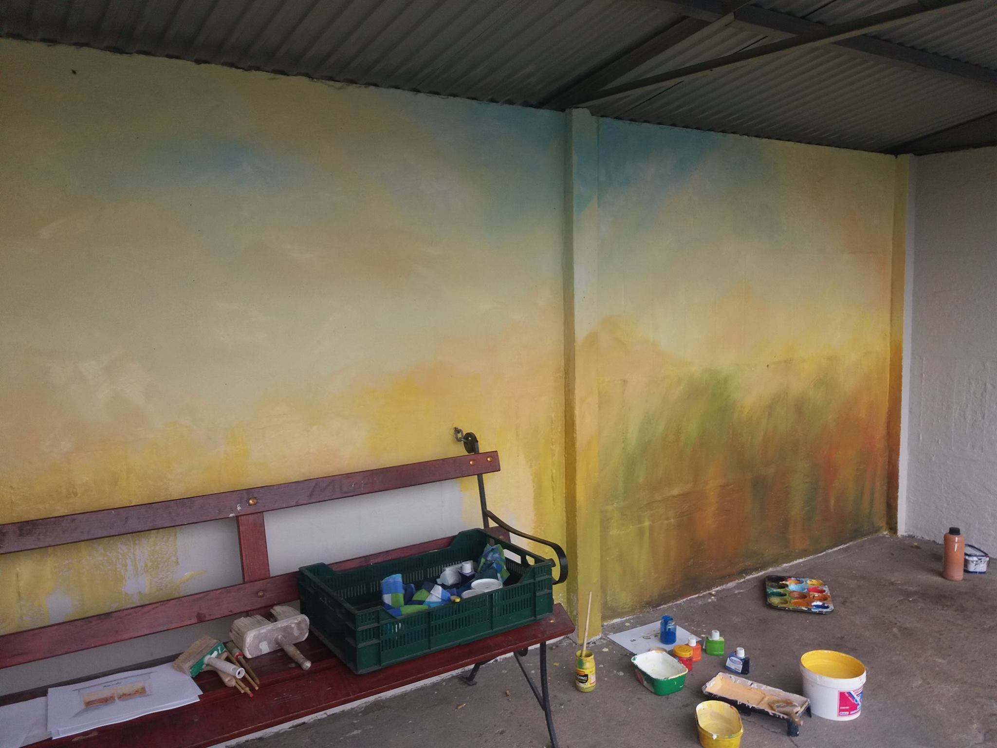Dzięki lokalnej firmie, nieodpłatnie został zamontowany nowy dach. Przystanek wyczyszczono, załatano ubytki i zagruntowano podłoże. Środki do malowania kupiono z pieniędzy Gminy Ostrów Wielkopolski. Na starej wiacie pojawiły się piękne, malowane maki, chabry i kwiaty rumianku.