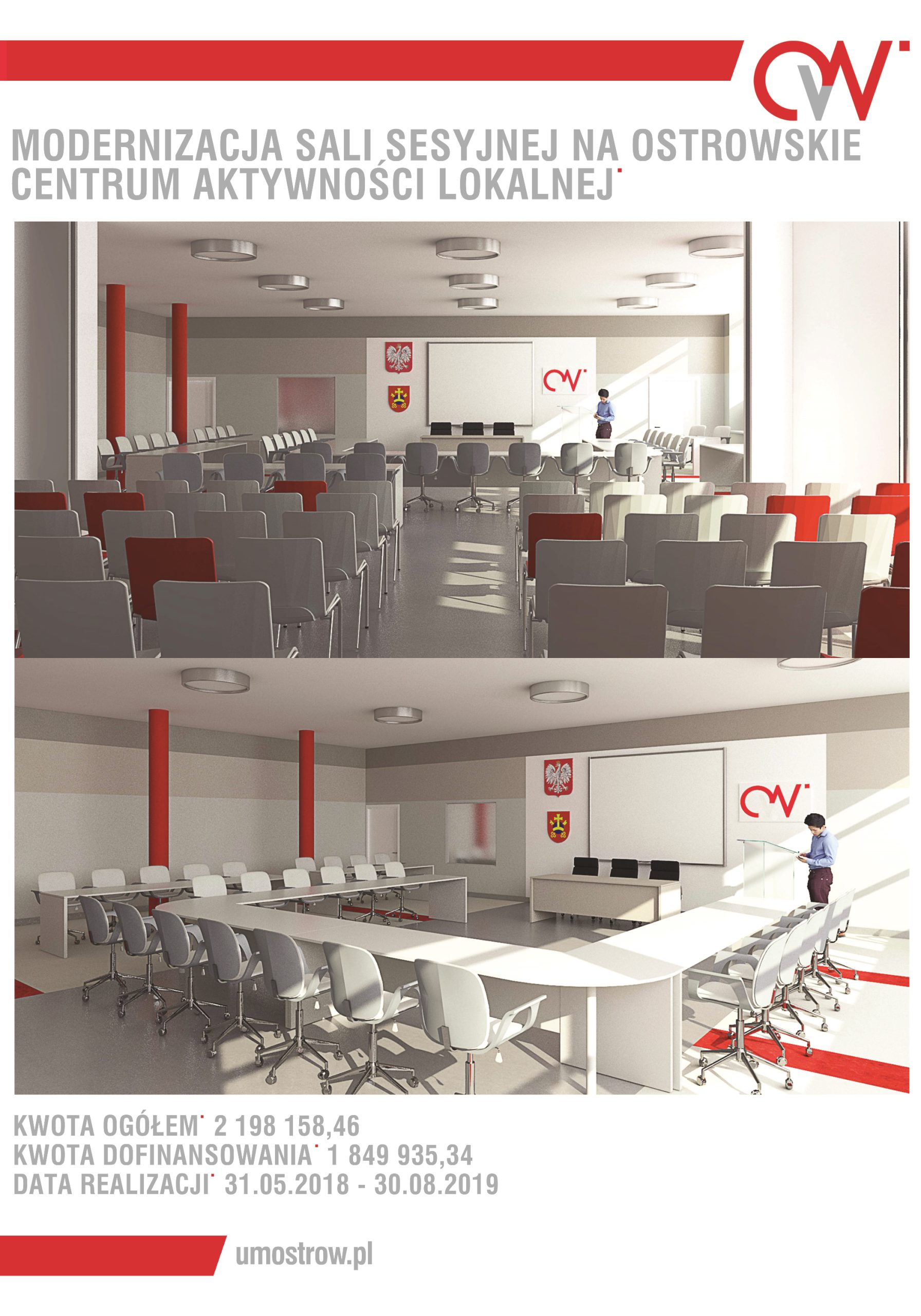 Ostrowska sala sesyjna wymagała remontu. Została włączona do gigantycznego projektu modernizacji śródmieścia Ostrowa. Oprócz niej remontowany jest amfiteatr w Parku Miejskim, Ogródki Jordanowskie oraz odcinek od Palcu Rowińskiego przez ulicę Wiosny Ludów po ostrowski deptak. Cały projekt wart jest ponad 11 milionów z czego dziewięć do kwota dofinansowania dla miasta.