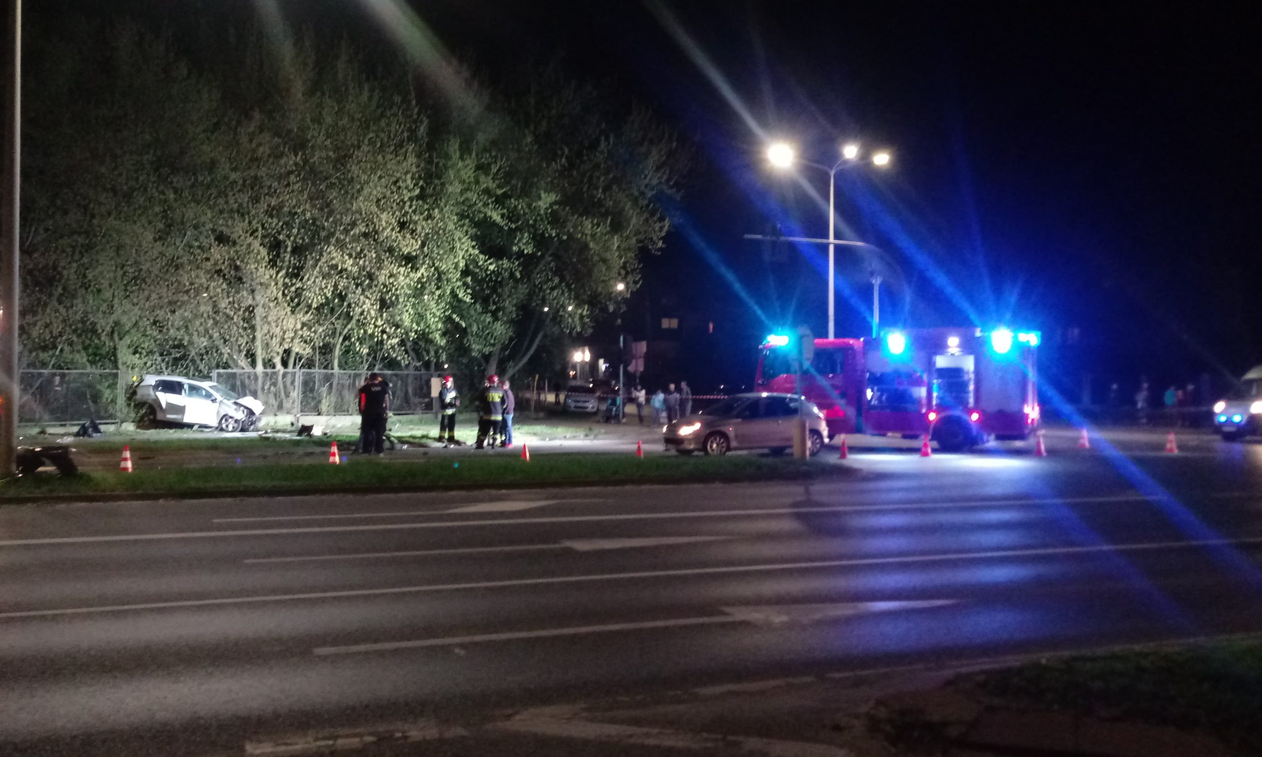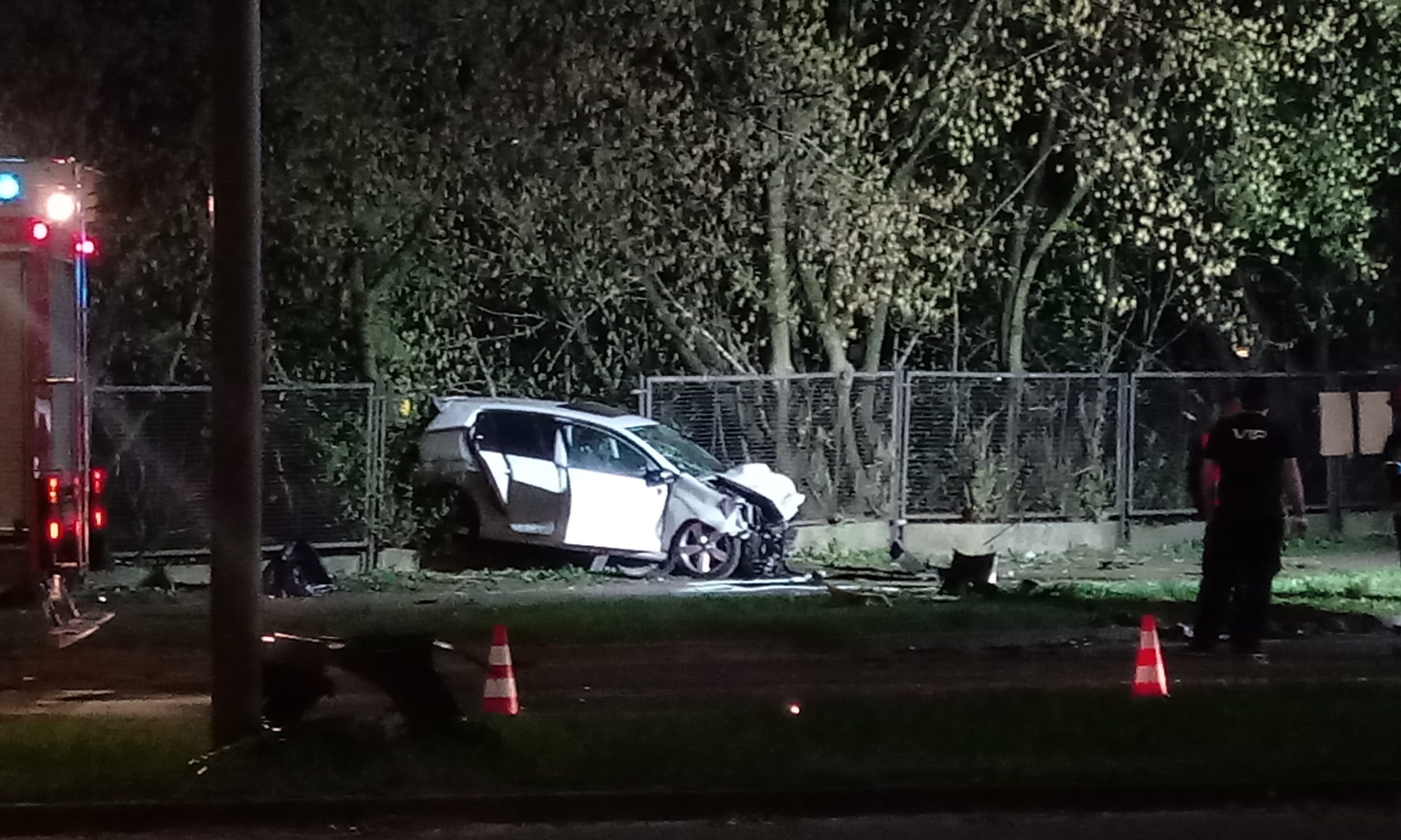 Wypadek miał miejsce ok. godz. 22.00. Czołowe zderzenie volkswagena i peugeota było tak duże, że pierwszy z tych pojazdów zatrzymał się na płocie, taranując barierkę. Oba auta mają rozbite przody w wyniku czołowego zderzenia. Jak udało nam się ustalić, obaj kierowcy zostali przewiezieni do ostrowskiego szpitala. Policja wyjaśnia dokładne okoliczności zdarzenia. Na miejscu występują utrudnienia w ruchu.