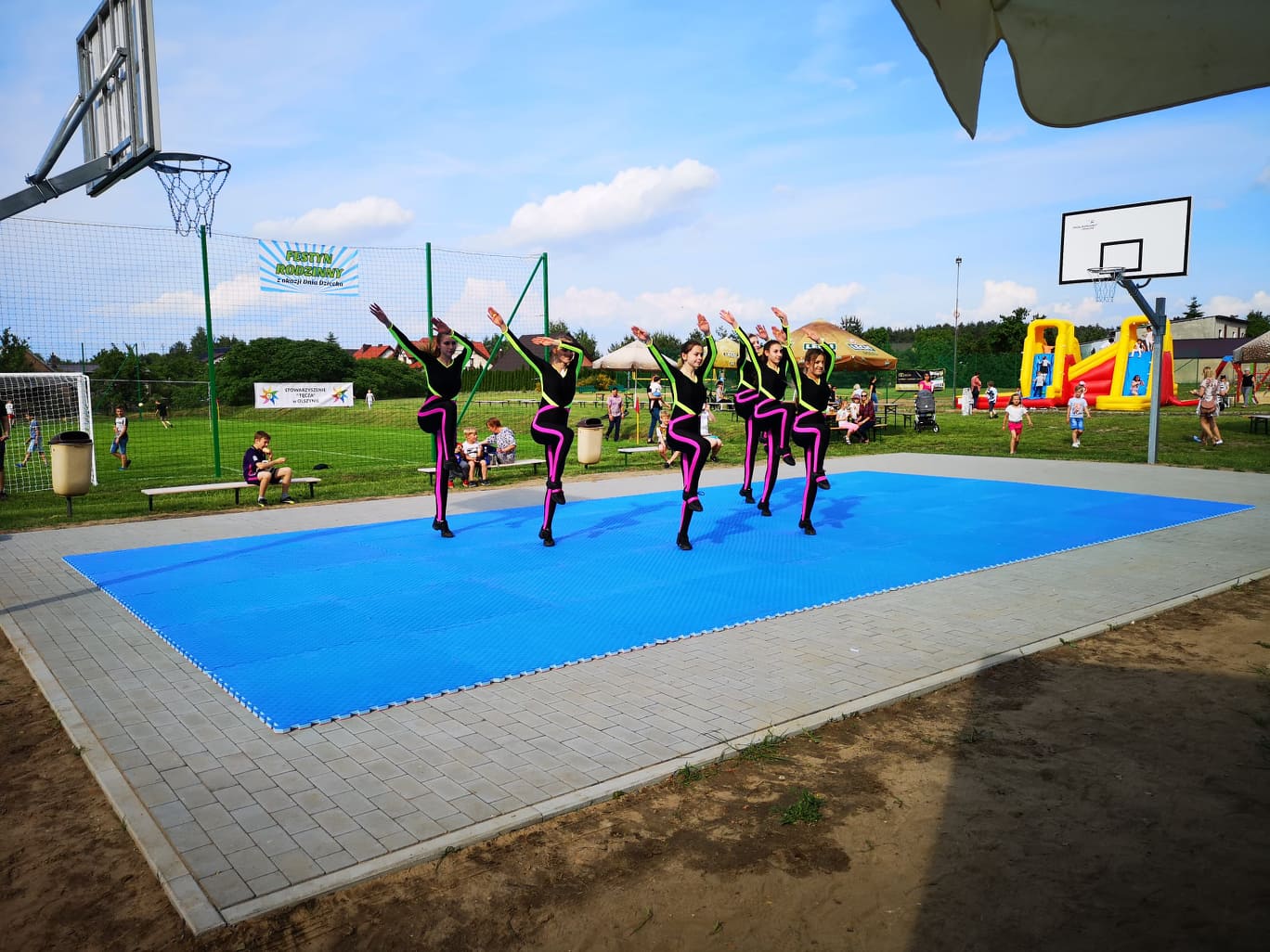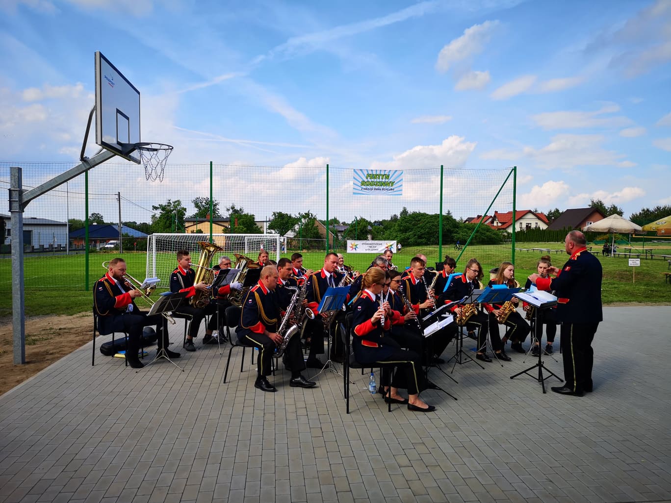 Atrakcjami „sypnęło” również w Olszynie. Festyn rozpoczął się od występu Miejskiej Orkiestry Dętej, zaraz potem odbył się pokaz aerobiku w wykonaniu uczennic z Zespołu Szkół nr 1 w Ostrzeszowie. I tam nie zabrakło dmuchanych zamków i przejażdżek konnych, a także pokazów przygotowanych przez strażaków i policjantów.