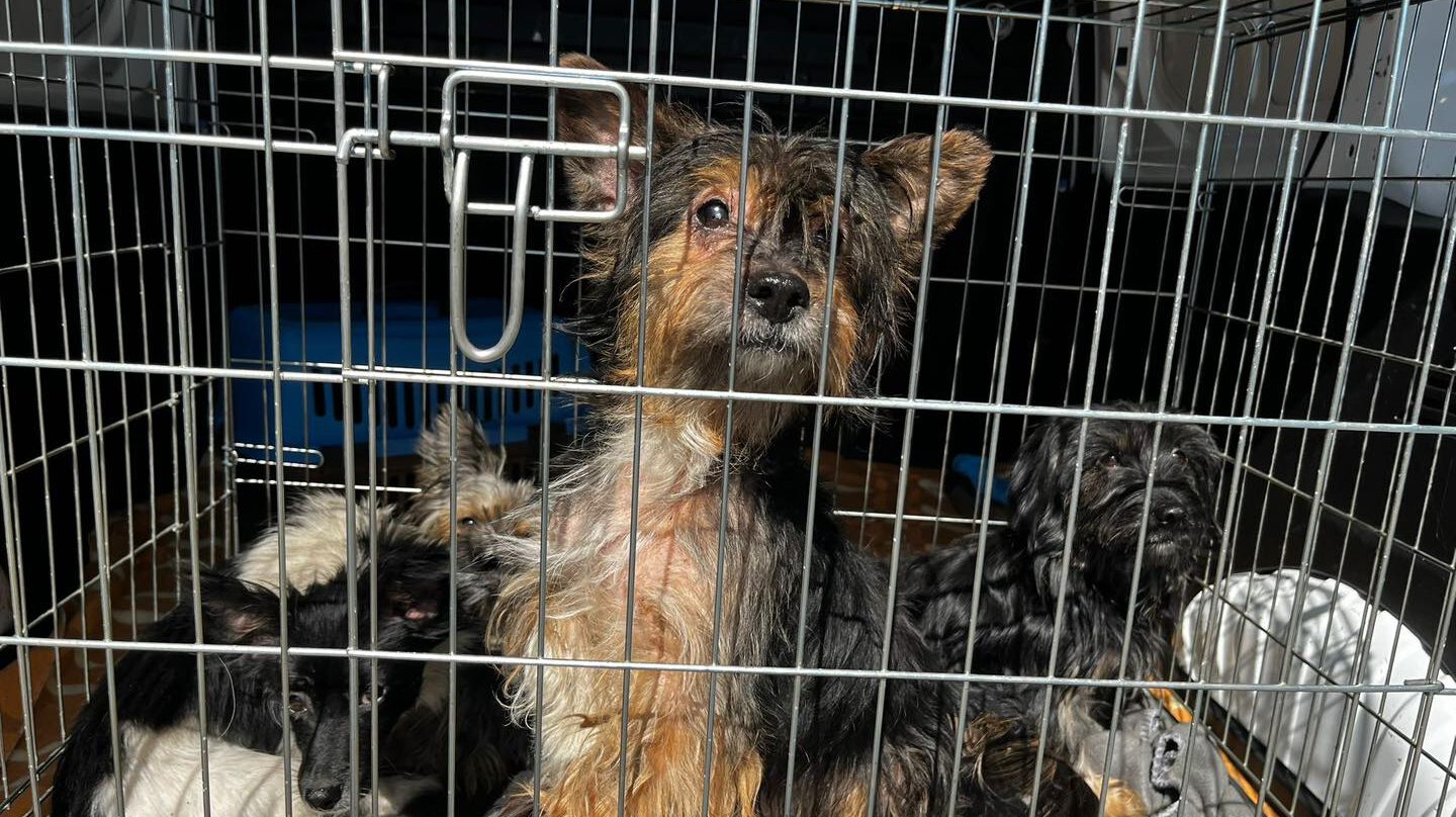 Dramat się powtórzył. Tym razem odebrali z tej posesji 15 psów. Dziewięć suczek (w tym dwie w ciąży) i sześć samców. Zwierzęta są w wieku od ok. 6 tygodni do 6 lat. „Przerośnięte pazury, pchły jedzące je żywcem, sierść sfilcowana i brudna od sadzy, u jednego psa ogromne problemy skórne” – wyliczają przedstawiciele podostrowskiego schroniska.