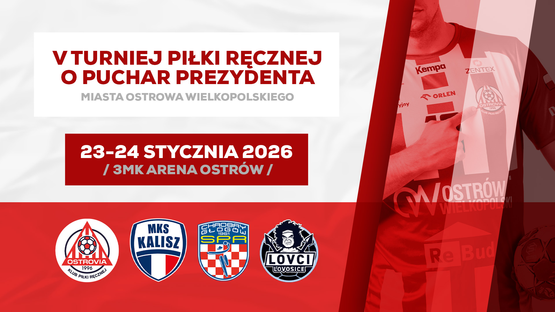 Przed nami święto piłki ręcznej w Ostrowie, a więc V Turniej o Puchar Prezydenta. Dwa dni grania ekip z Polski i Czech. W 3mk Arenie Ostrów zaprezentują się w towarzyskim turnieju: Netland MKS Kalisz, KGHM Chrobry Głogów, HK FCC Mesto Lovosice, a także gospodarze – Rebud KPR Ostrovia.