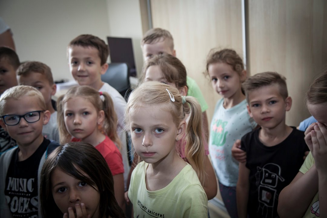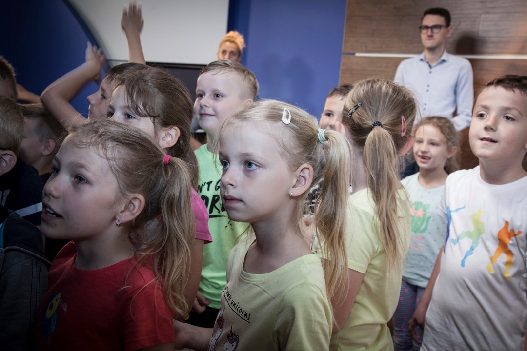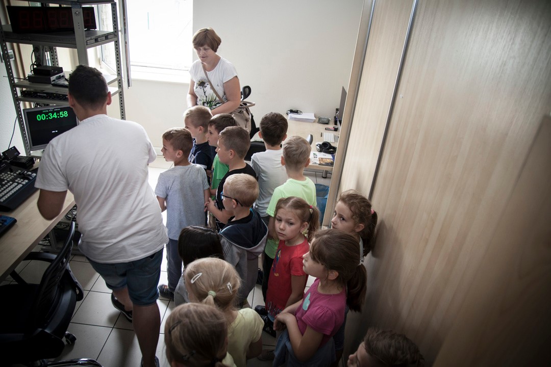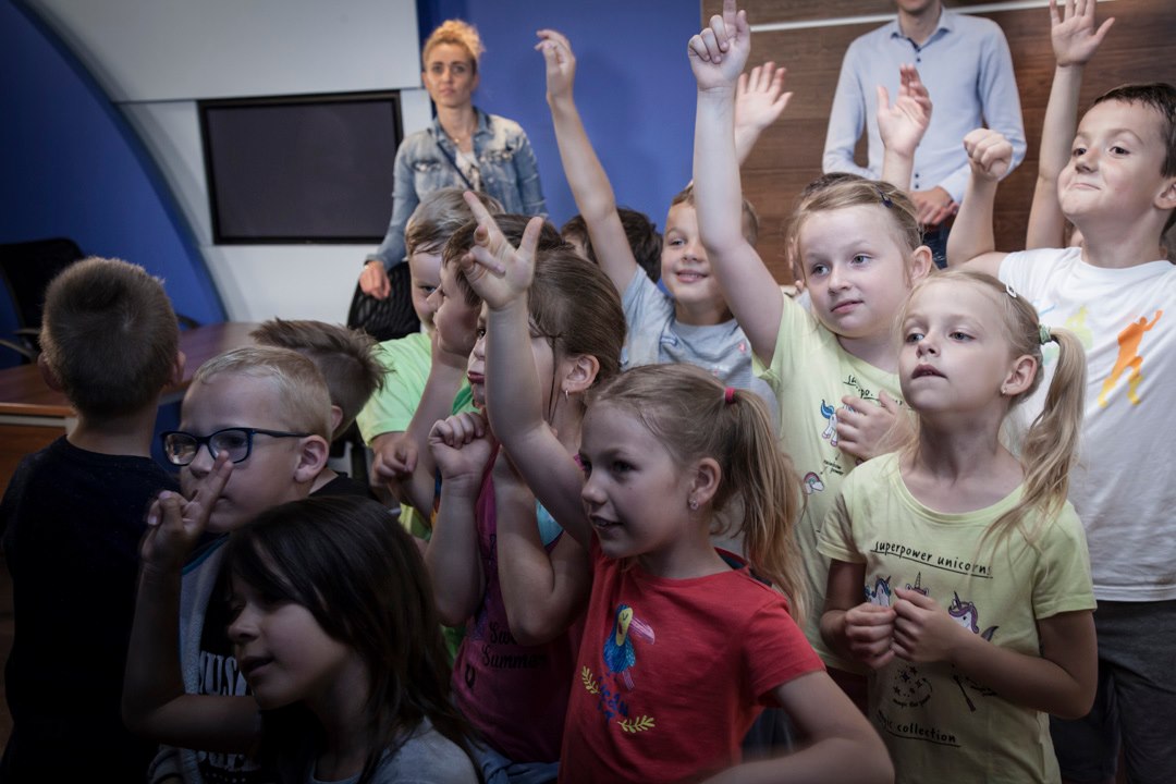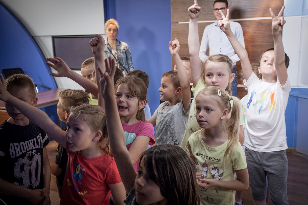„Łaaał!” To najczęstszy okrzyk, który padał z ust dzieci, kiedy weszły do studia telewizyjnego. Uczniowie klasy Ib Szkoły Podstawowej nr 13 w Ostrowie Wielkopolskim najwyraźniej inaczej wyobrażały sobie to miejsce. Miny po wejściu do środka, a także możliwość stania się choć na chwilę prezenterem Wydarzeń i prowadzącym program publicystycznych mówiły jedno – wszystkim bardzo się podobało.