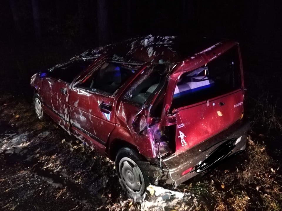 Do zdarzenia doszło w niedzielę przed godz. 22.00. Na początku lasu na trasie Zduny – Baszków kierowane przez 17-latka daewoo tico wpadło do rowu i dachowało. – Ze wstępnych ustaleń wynika, że kierujący daewoo tico 17-letni mieszkaniec gminy Pępowo, będąc w stanie nietrzeźwości, z nieustalonych przyczyn zjechał do rowu, a następnie pojazd dachował. Nastolatek został przetransportowany do szpitala w Ostrowie Wielkopolskim – mówi asp. Piotr Szczepaniak, oficer prasowy Komendy Powiatowej Policji w Krotoszynie.