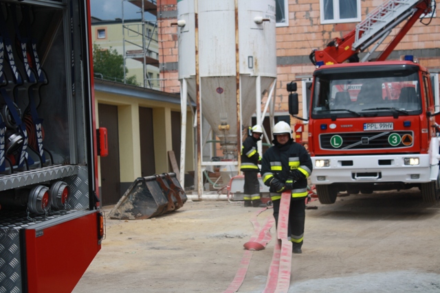 Ćwiczenia policji, straży pożarnej i Centrum Zarządzania Kryzysowego w Pleszewie, które przeprowadzono w budowanym właśnie skrzydle komendy policji wyglądały bardzo groźnie, ale na szczęście nikomu nic się nie stało. – „Oficer dyżurny komendy został powiadomiony przez kierownika robót, że podczas prac budowlanych na pierwszym piętrze nowo powstającego budynku doszło do zaprószenia ognia” – tak brzmiał komunikat, od którego wszystko się zaczęło. – Scenariusz przewidywał, że pożar powstał w części budowanej. Jednocześnie istniało realne zagrożenie dla części użytkowanej komendy policji – mówi mł. kpt. Paweł Mimier z zespołu prasowego Komendy Powiatowej Straży Pożarnej w Pleszewie.