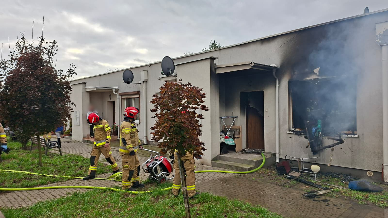 Pożar wybuchł w mieszkaniu w zabudowie szeregowej. Na miejscu strażacy gaszą ogień.