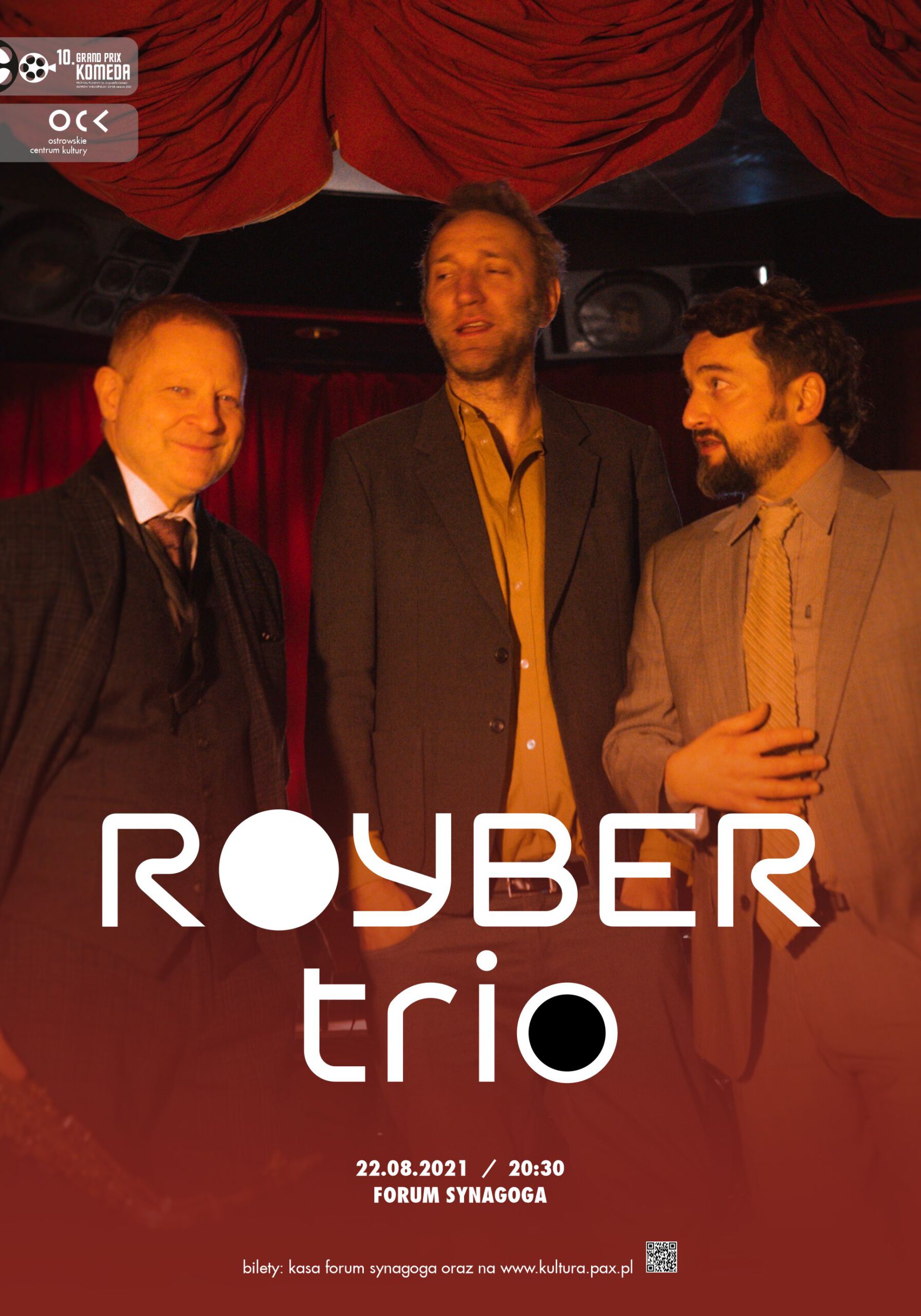 Po tym wydarzeniu publiczność przeniesie się do Forum Synagoga, gdzie o 20.30 zagra formacja Royber Trio w składzie: Mikołaj Trzaska – saksofon, klarnet, Olo Walicki – kontrabas, Macio Moretti – perkusja.