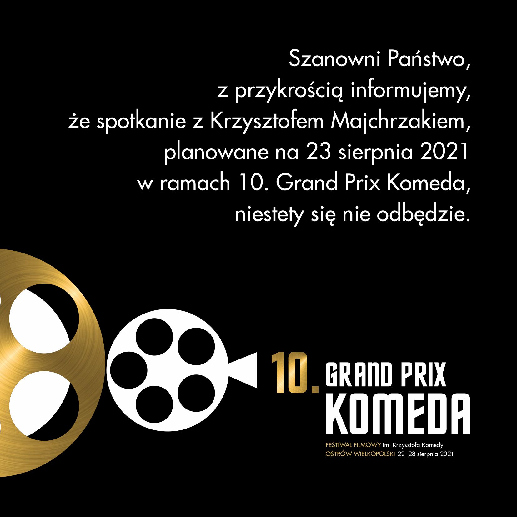Warto zaznaczyć, że tego dnia nie odbędzie się zapowiadany wcześniej koncert kwartetu Krzysztofa Majchrzaka, podobnie jak zostało odwołane spotkanie z tym wybitnym aktorem, które to miało mieć miejsce w poniedziałek, 23 sierpnia.