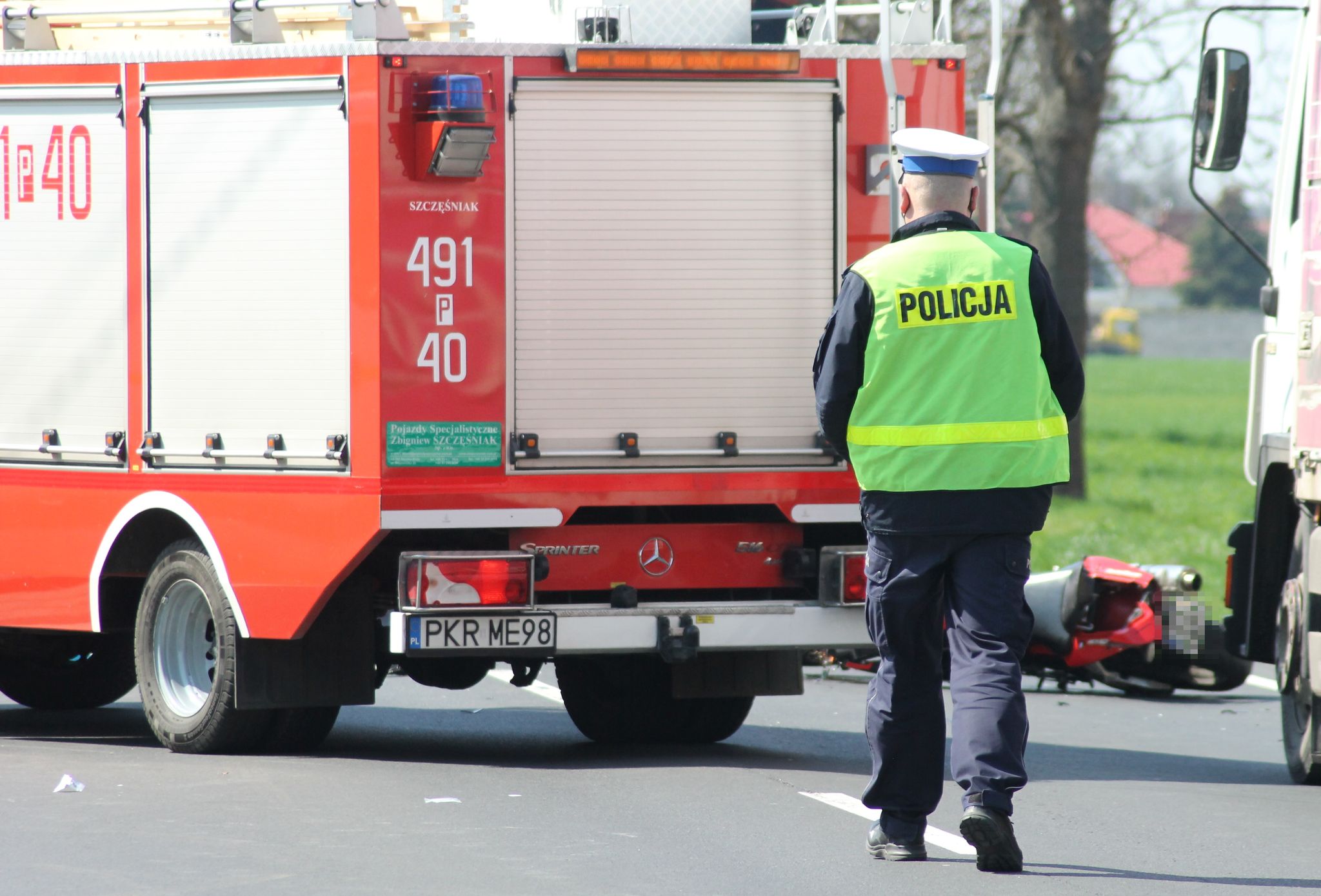 Droga jest całkowicie zablokowana. Policja wyznaczyła objazdy. – Ze wstępnych ustaleń wynika, że kierujący ciężarówką skręcał w lewo do posesji i wymusił pierwszeństwo na kierującym motocyklem, który w niego uderzył. Motocyklista zmarł po nieudanej próbie reanimacji. Zmarł na miejscu – mówi asp. Piotr Szczepaniak, oficer prasowy Komendy Powiatowej Policji w Krotoszynie.