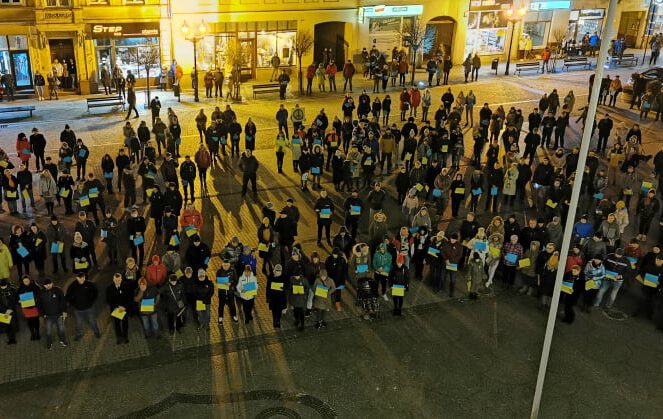 Dziesiątki mieszkańców Krotoszyna wzięło udział w niedzielnym wiecu poparcia dla Ukraińców i wyrażenia sprzeciwu wobec wojny z rosyjskim najeźdźcą. Za organizację odpowiadali przedstawiciele klubów LKS Ceramik Krotoszyn i UKS Herakles Orpiszew. To nie przypadek, bo trenerem i czynnym zawodnikiem LKS-u Ivan Izdebskyi pochodzi z Ukrainy. Nie tylko on, ale także inni przedstawiciele tego klubu oraz UKS-u, jak również władze samorządowe wzięli udział w wiecu.