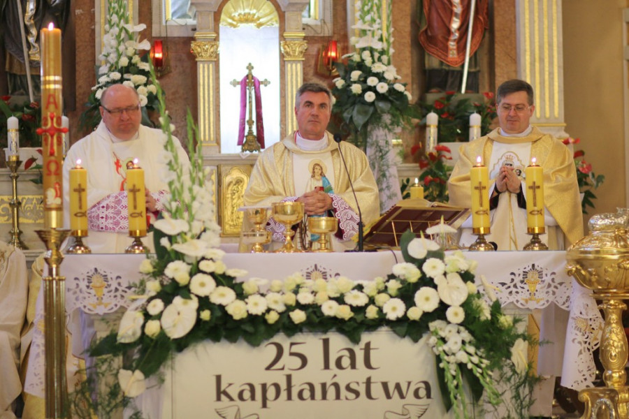 Jak na taki jubileusz przystało nie zabrakło życzeń i podziękowań. – W dniu srebrnego jubileuszu święceń kapłańskich proszę przyjąć gratulacje oraz z serca płynące podziękowania za dar księdza kapłańskich rąk. Wdzięczność tę wyrażam nie tylko w imieniu swoim, ale również mieszkańców Gminy i Miasta Nowe Skalmierzyce, którym towarzyszy ksiądz podczas wszelkiego rodzaju ważnych dla naszej wspólnoty wydarzeń – dziękował burmistrz Jerzy Łukasz Walczak.
