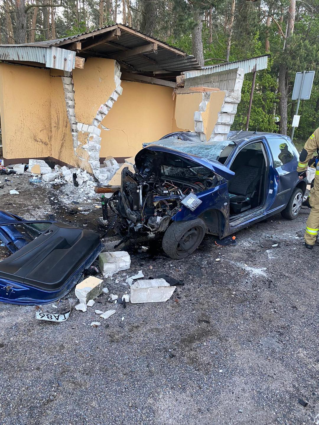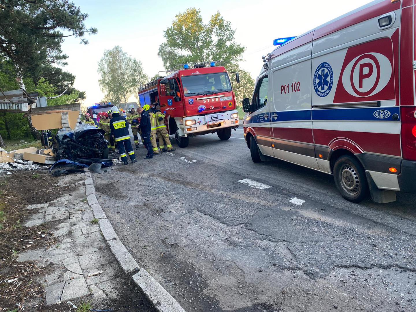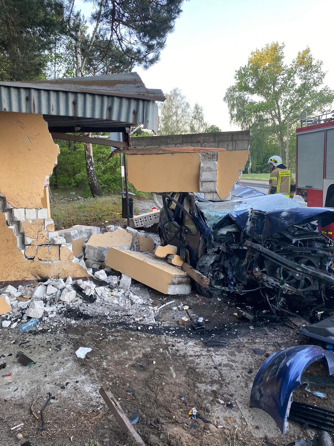 Strażacy otrzymali zgłoszenie o wypadku przed godziną 5.00. Z informacji wynikało, że do zdarzenia doszło w Kwileniu. Administracyjnie teren ten jednak należy do Starej Kaźmierki w gminie Chocz. Kierowca samochodu osobowego uderzył w przystanek autobusowy. – Jedna osoba była uwięziona w pojeździe. Strażacy za pomocą narzędzi hydraulicznych usunęli drzwi i przekazali osobę poszkodowaną zespołowi ratownictwa medycznego. Była przytomna. Została przewieziona do szpitala – informuje dyżurny stanowiska kierowania PSP w Pleszewie.