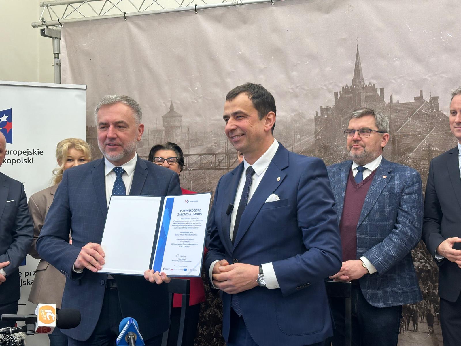 W środę podczas konferencji prasowej przedstawiciele władz samorządowych i Urzędu Marszałkowskiego Województwa Wielkopolskiego w Poznaniu podpisali umowę potwierdzającą zawarcie umowy o przyznaniu środków. Koszt inwestycji to 49 mln zł, przyznane dofinansowanie z Unii Europejskiej i budżetu państwa opiewa na kwotę 39 mln zł. Pozostałe 10 mln dokłada gmina Nowe Skalmierzyce.