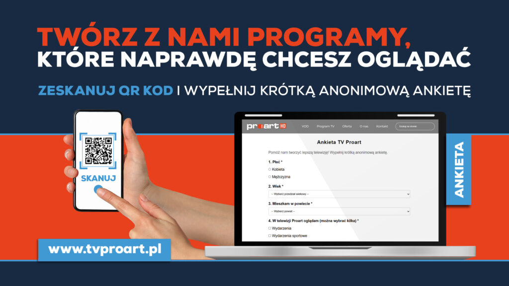 Telewizja Proart zachęca do udziału wszystkich widzów z regionu południowej Wielkopolski. Ankietę można wypełnić m.in. poprzez stronę internetową, skanując kod QR pojawiający się na ekranie telewizora, a także w Biurze Obsługi Klienta firmy Promax w Ostrowie Wielkopolskim przy ul. Wolności 19.