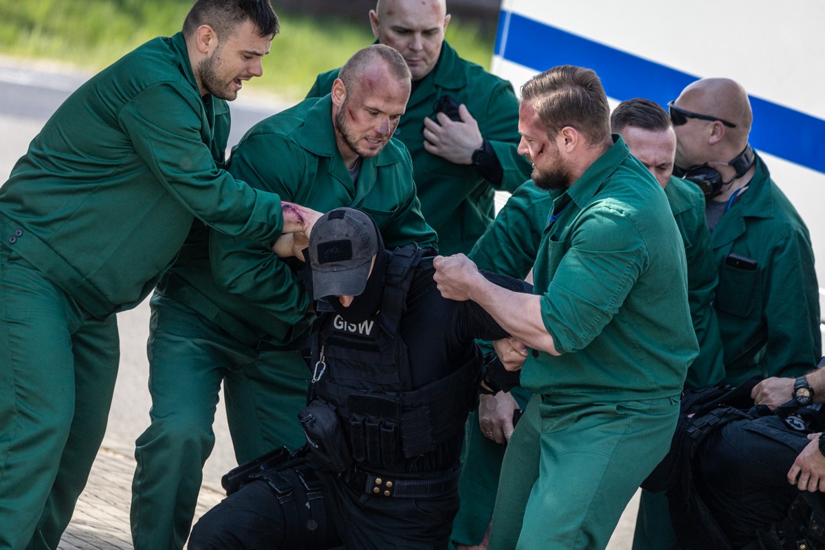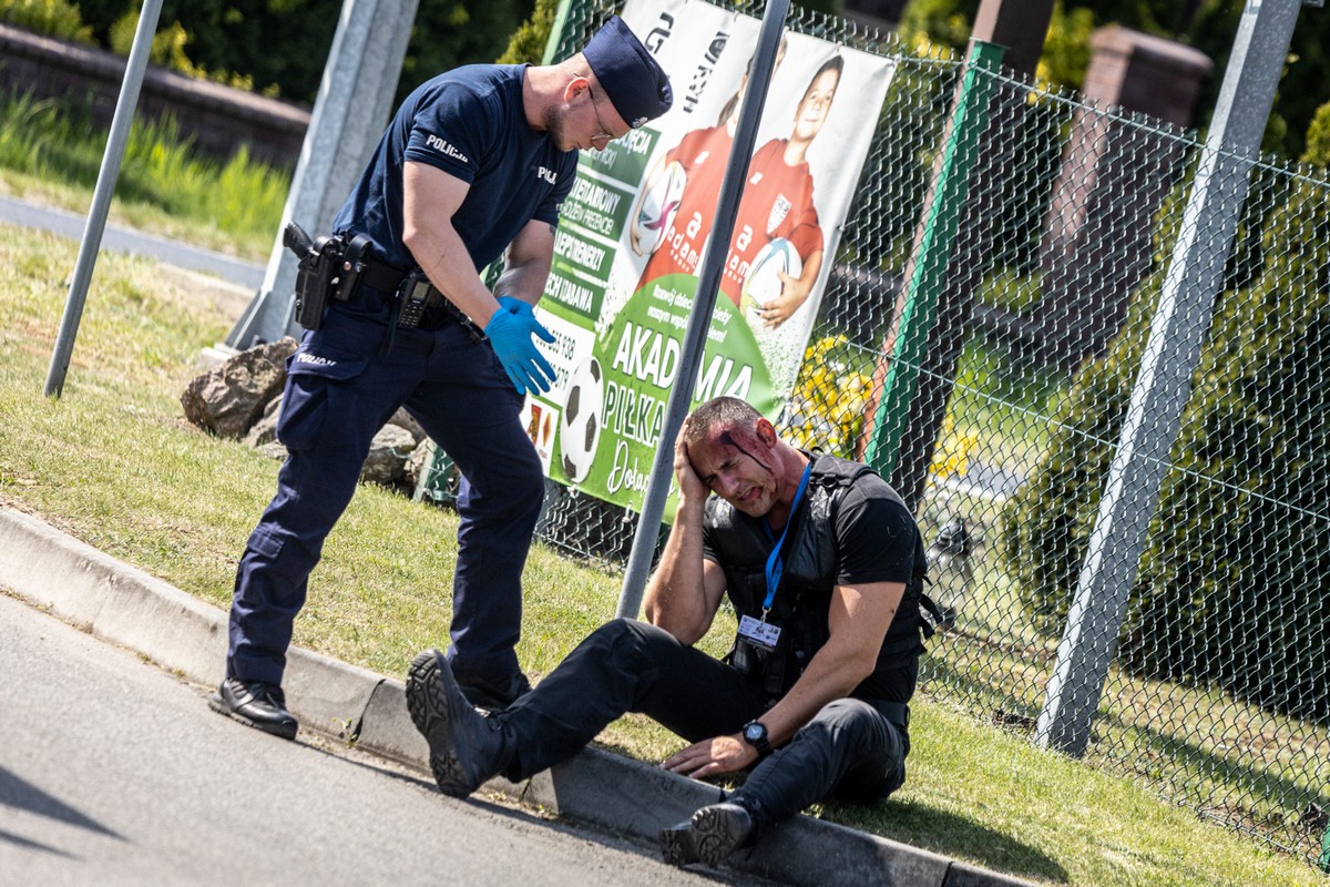 Dziesięciu więźniów wzięło za zakładników dwóch funkcjonariuszy Służby Więziennej i zabarykadowali się w hotelu. Wśród rannych w wyniku zderzenia więźniarki z samochodem osobowym było dwóch funkcjonariuszy SW, kierowca oraz pasażerowie osobówki. – Zadaniem służb biorących udział w działaniach było zabezpieczenie miejsca zdarzenia drogowego oraz podjęcie czynności ratowniczych, jak również podjęcie działań zmierzających do izolacji terenu, na którym ukryli się zbiegli więźniowie z zakładnikami. W związku z zajęciem obiektu i przetrzymywaniem zakładników podjęte zostały negocjacje policyjne oraz przygotowany został plan szturmu, które zakończyły się opuszczeniem budynku przez sprawców i zakładników – relacjonuje st. asp. Magdalena Hańdziuk z Komendy Powiatowej Policji w Ostrzeszowie.